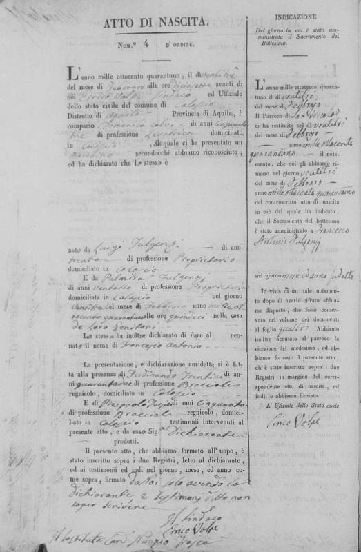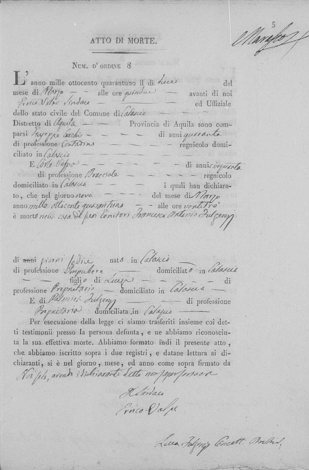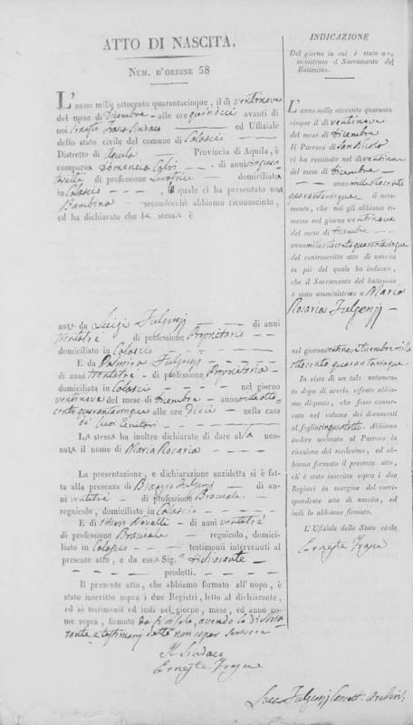 Maria Concetta Fulgenzi were married on April 29, 1855 in Calascio, L'Aquila, Abruzzo, Italy. He died.