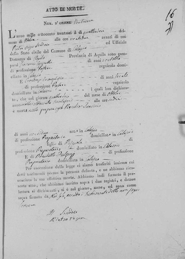 Giovanni Andrea Taranta were married on October 19, 1845 in Calascio, L'Aquila, Abruzzo, Italy. She died.