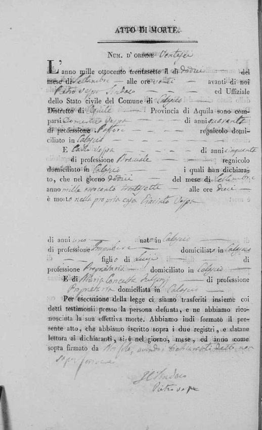 Cecilia Vespa were married on July 14, 1859 in Calascio, L'Aquila, Abruzzo, Italy. He died.