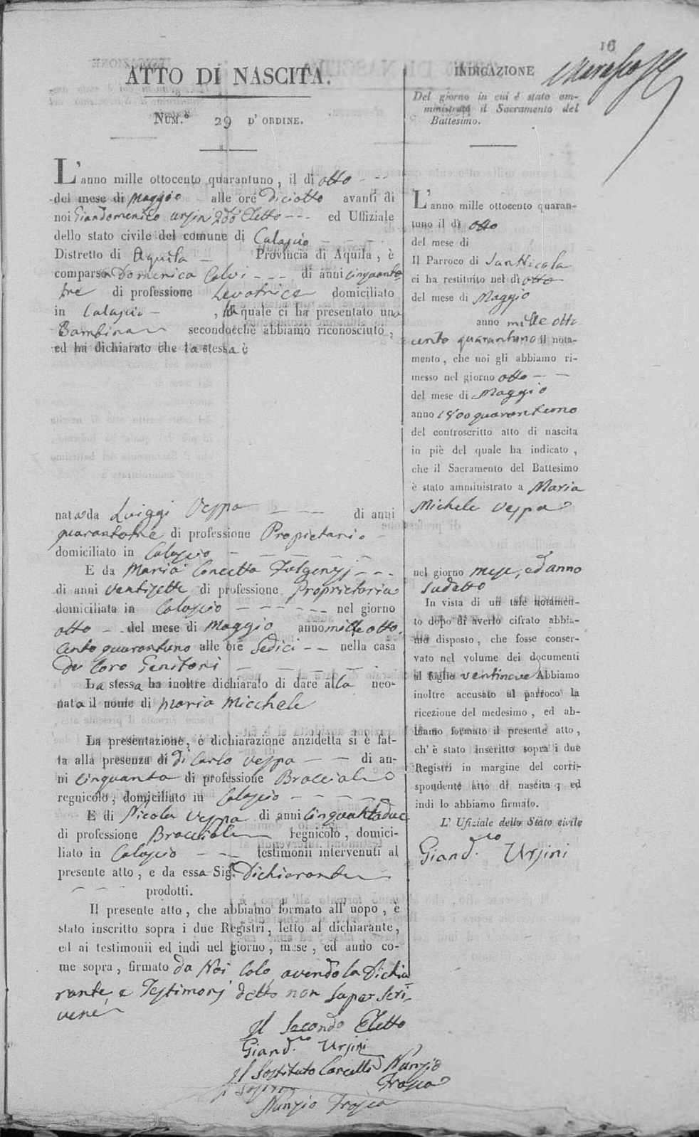 Maria Michele Vespa was born on May 8, 1841 in Calascio, L'Aquila, Abruzzo, Italy. She died.