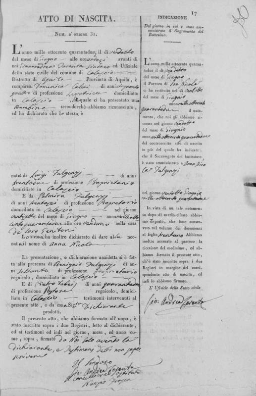 Anna Nicola Fulgenzi was born on June 28, 1842 in Calascio, L'Aquila, Abruzzo, Italy. She and