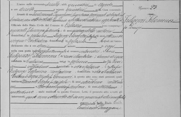 Maria Filomena Fulgenzi were married on August 29, 1856 in Calascio, L'Aquila, Abruzzo, Italy. He died.