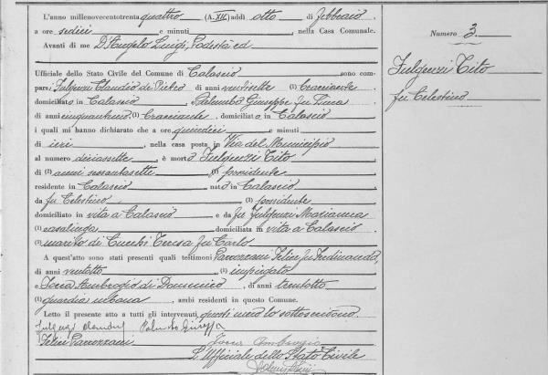 Tito Fulgenzi was born on August 3, 1866 in Calascio, L'Aquila, Abruzzo, Italy. He and