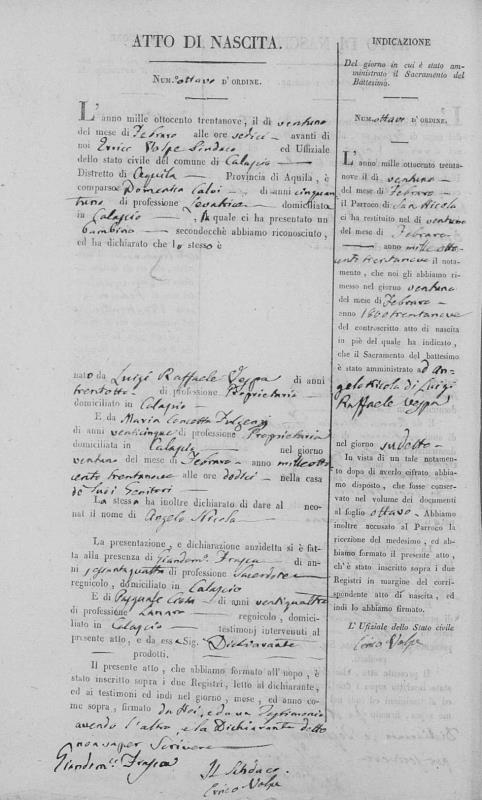 Nicola Novelli was born in 1825 in Calascio, L'Aquila, Abruzzo, Italy. He and