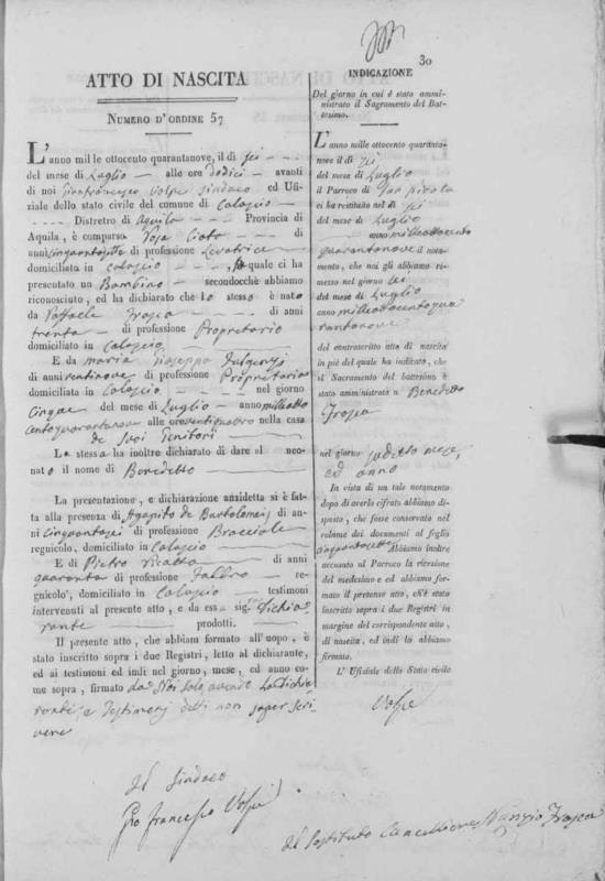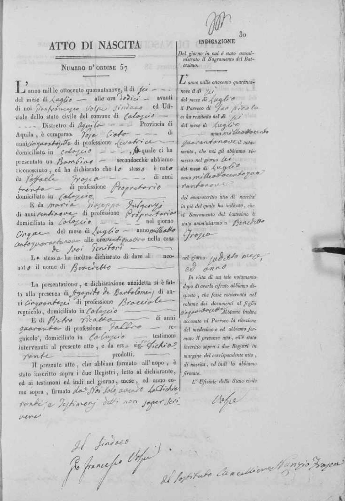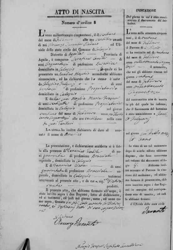 Domenico Taranta was born in 1806 in Calascio, L'Aquila, Abruzzo, Italy. He and