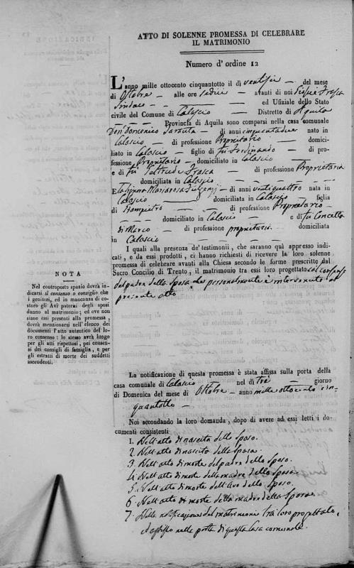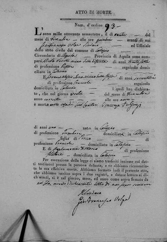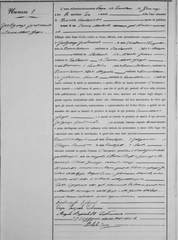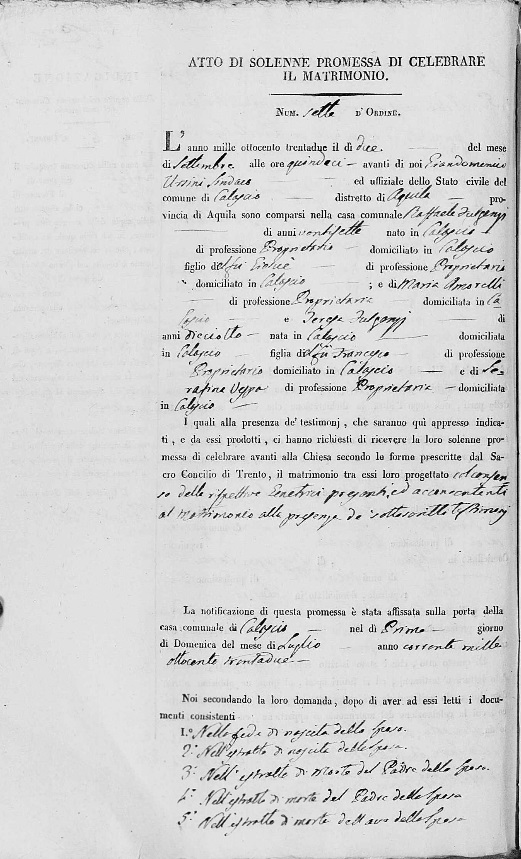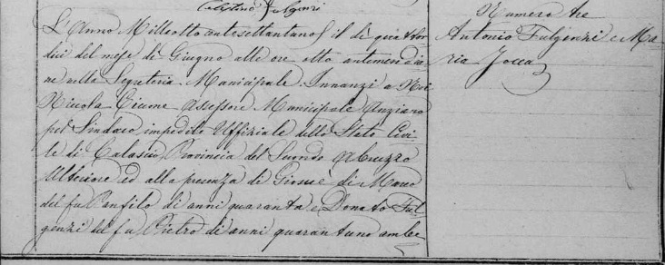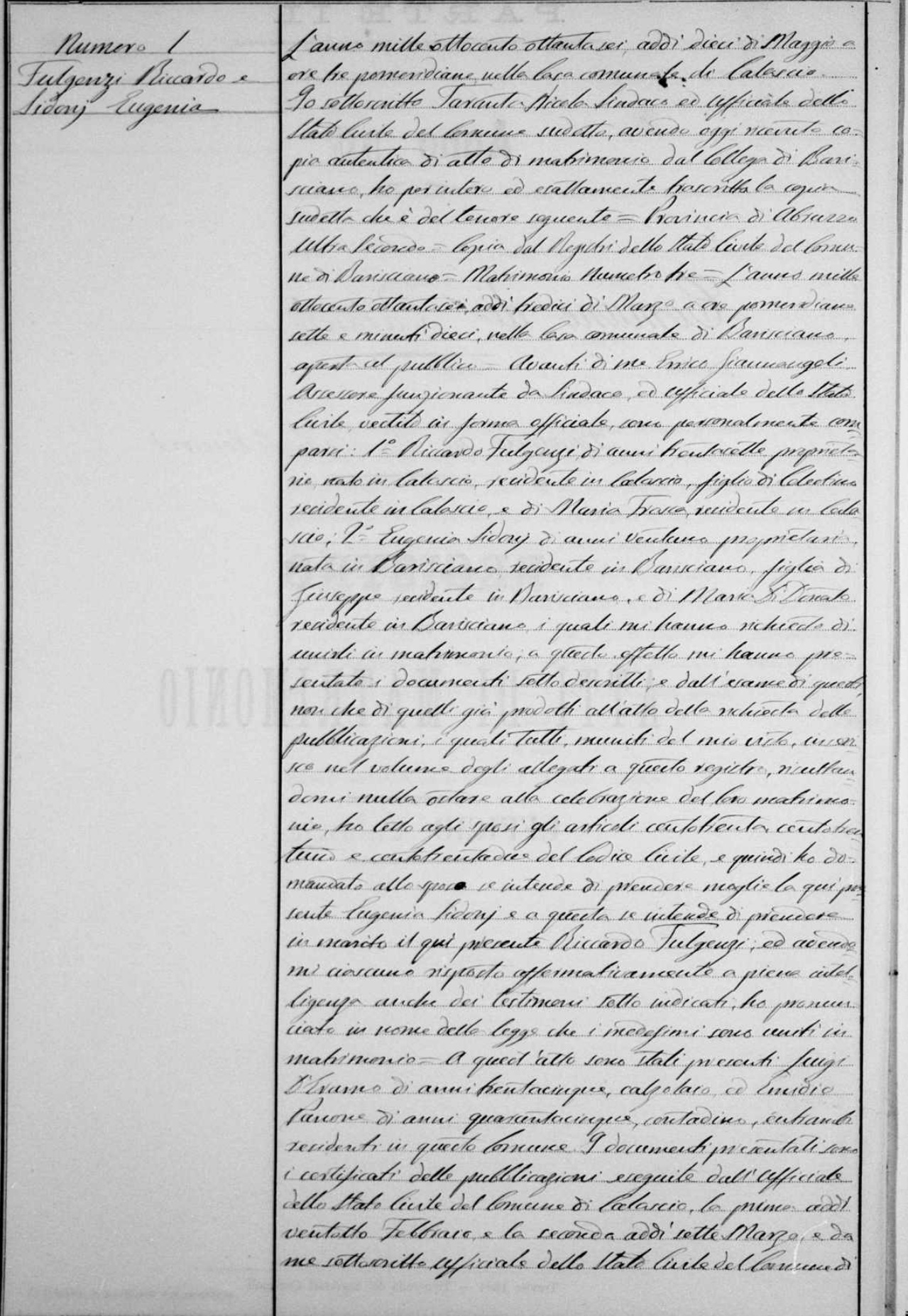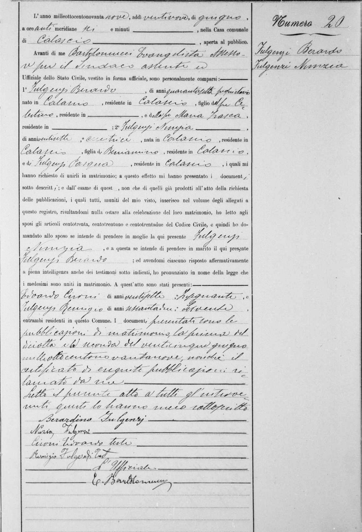 Mariarosa Fulgenzi were married on September 8, 1858 in Calascio, L'Aquila, Abruzzo, Italy. He died.