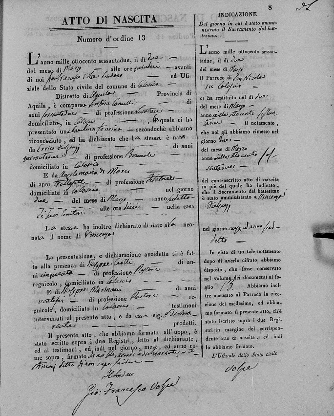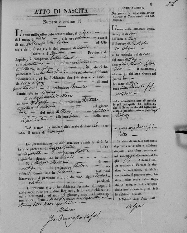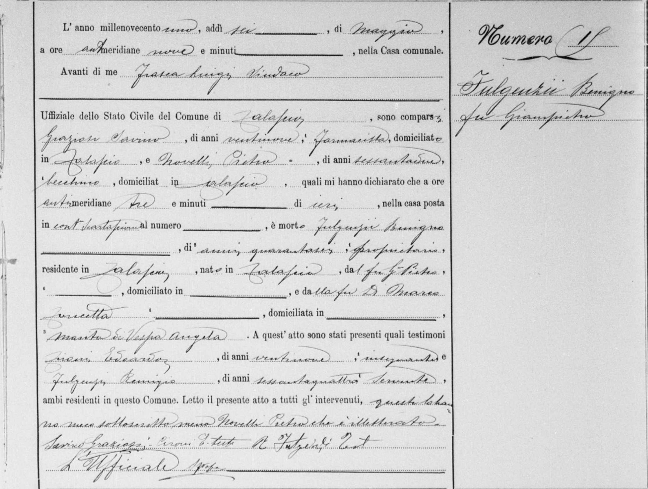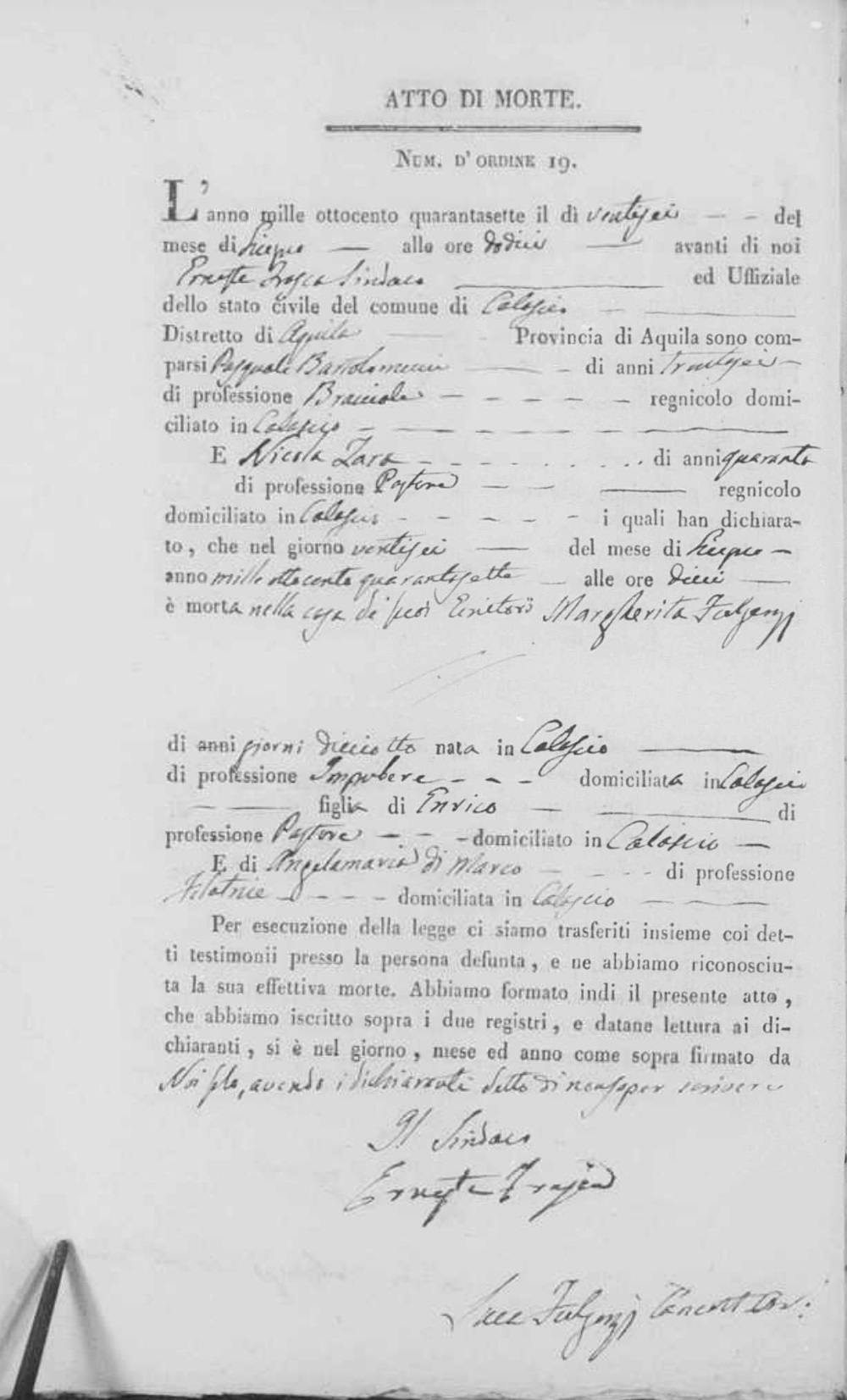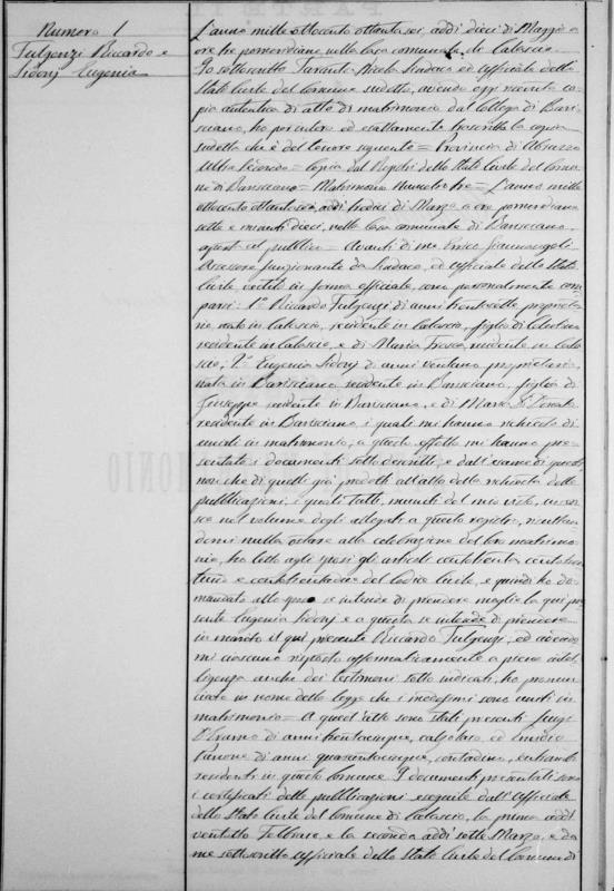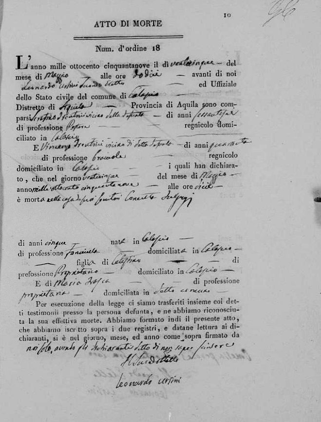 Mariarosa Fulgenzi were married on September 8, 1858 in Calascio, L'Aquila, Abruzzo, Italy. He died.