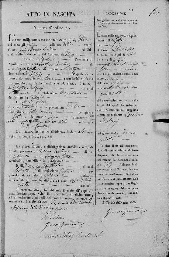 Carolina "Clara" Fulgenzi was born on June 7, 1857 in Calascio, L'Aquila, Abruzzo, Italy. She and