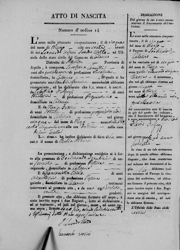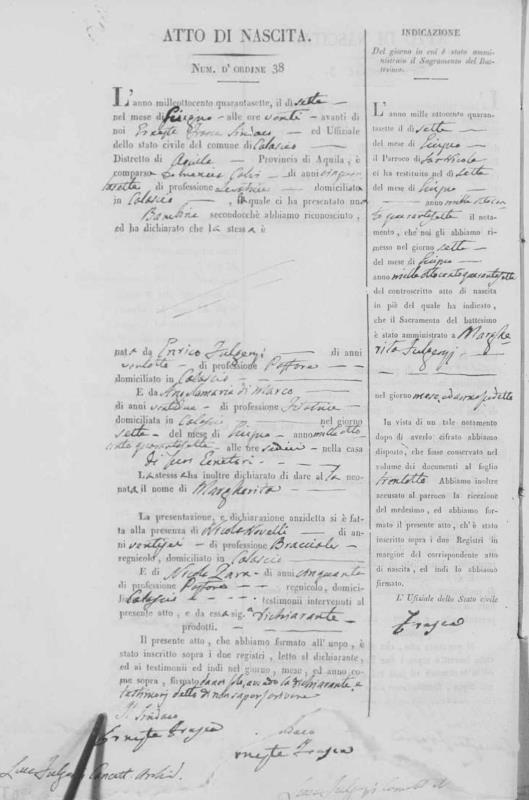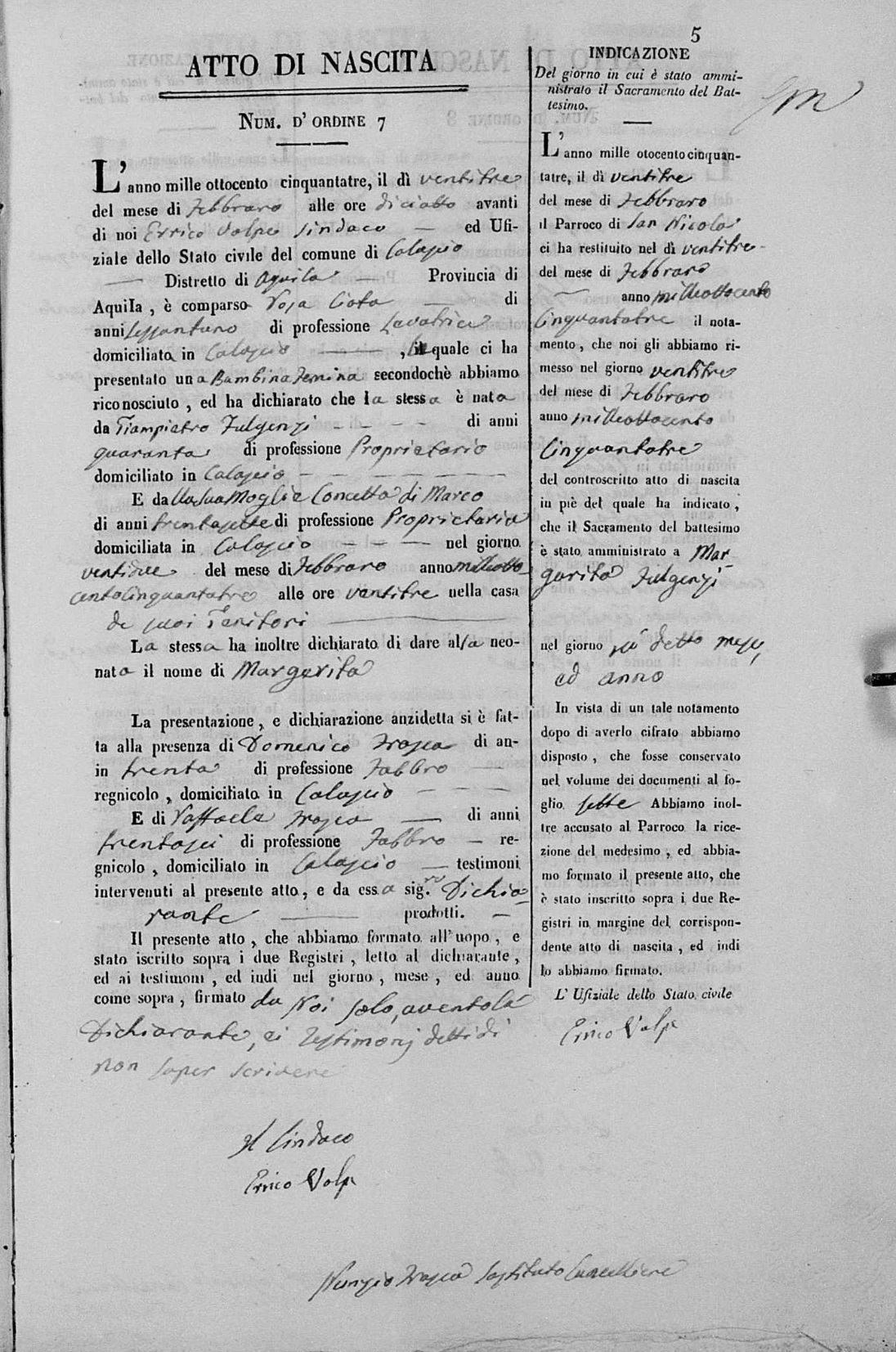 Marghertia Fulgenzi was born on February 22, 1853 in Calascio, L'Aquila, Abruzzo, Italy. She and