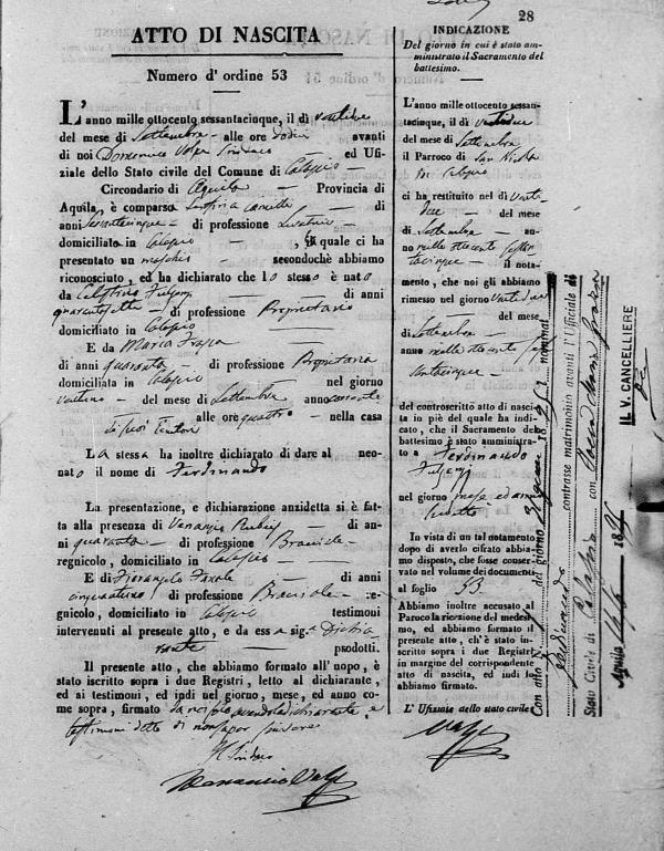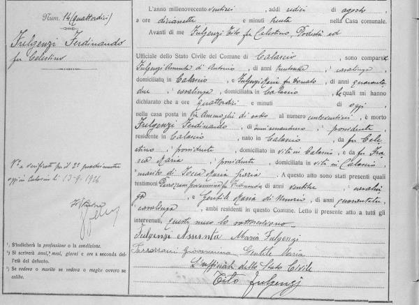 Ferdinando Fulgenzi was born on September 21, 1865 in Calascio, L'Aquila, Abruzzo, Italy. He and