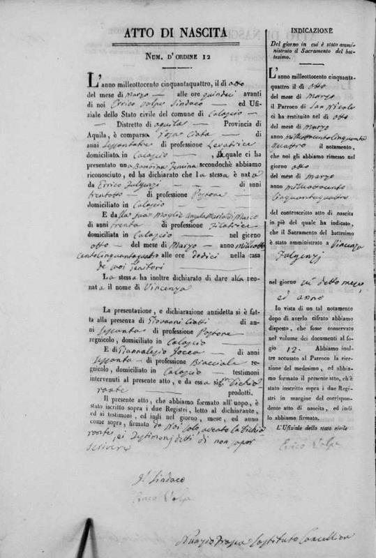 Vincenzo Fulgenzi was born on March 8, 1854 in Calascio, L'Aquila, Abruzzo, Italy. He died on March 12, 1854, at age 0, in Calascio, L'Aquila, Abruzzo, Italy.