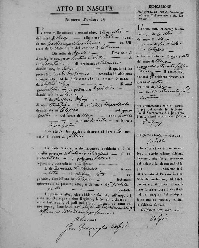 Albina Fulgenzi was born on March 4, 1862 in Calascio, L'Aquila, Abruzzo, Italy. She and
