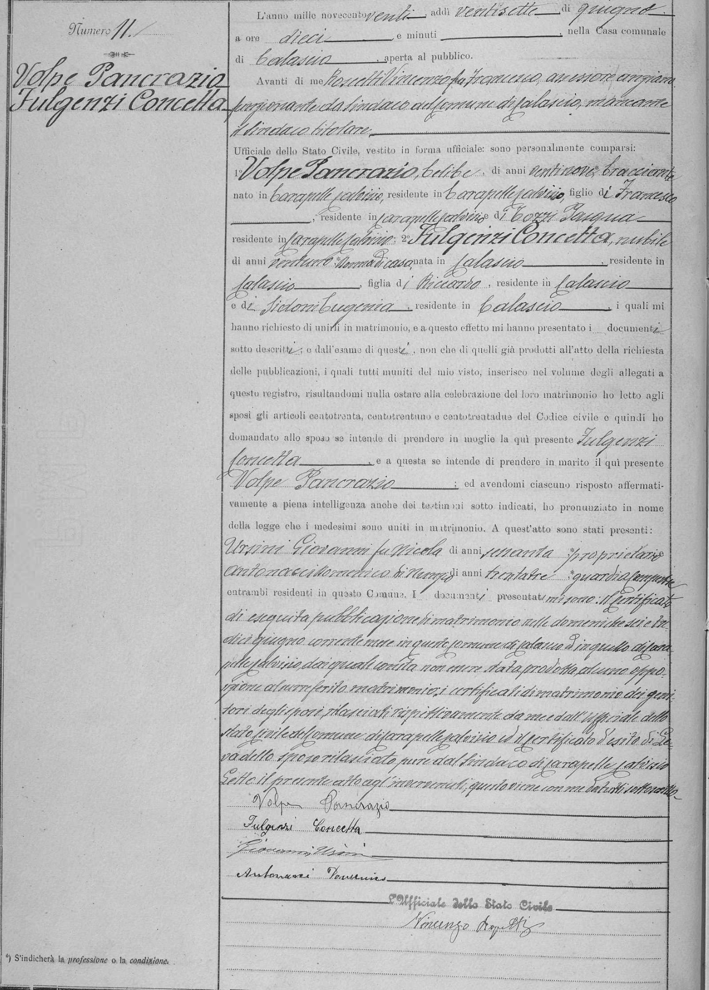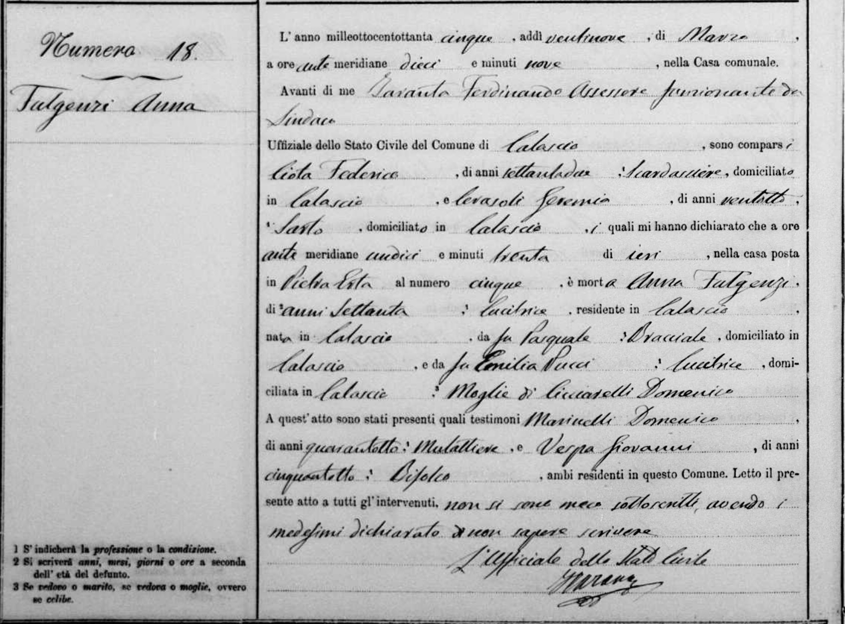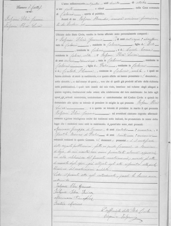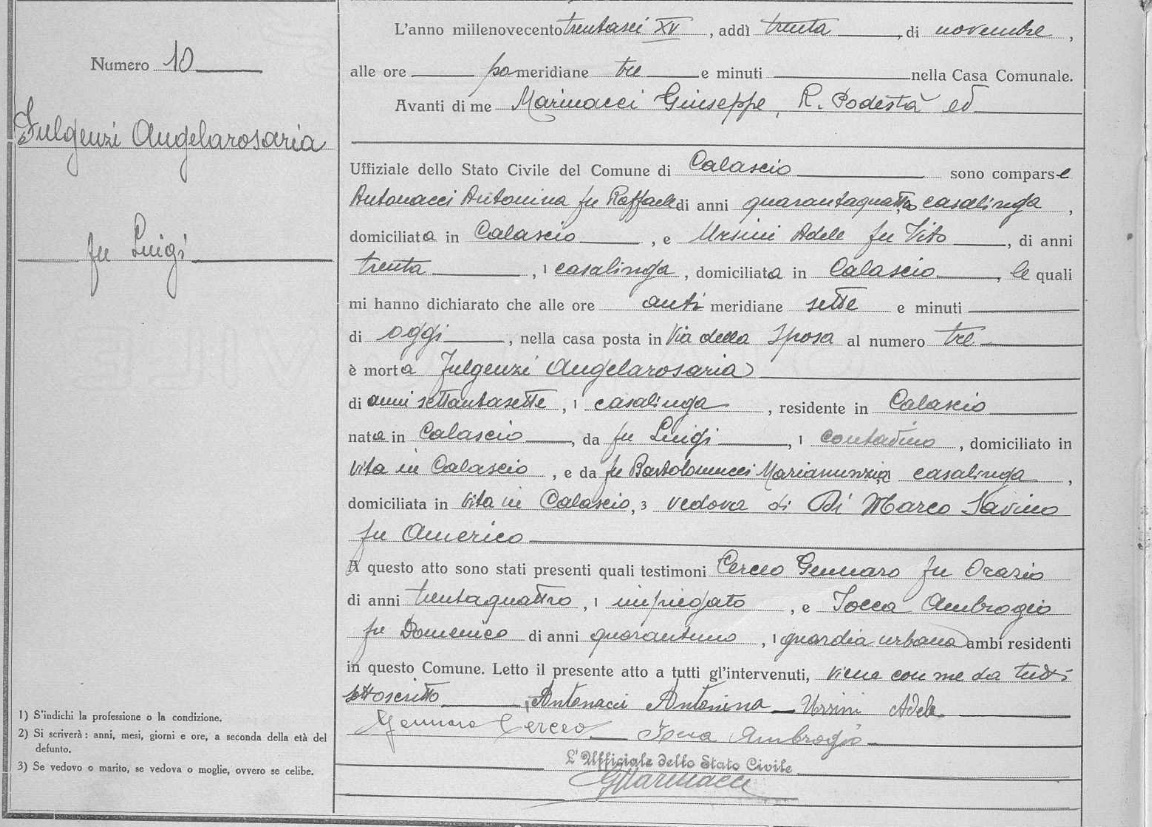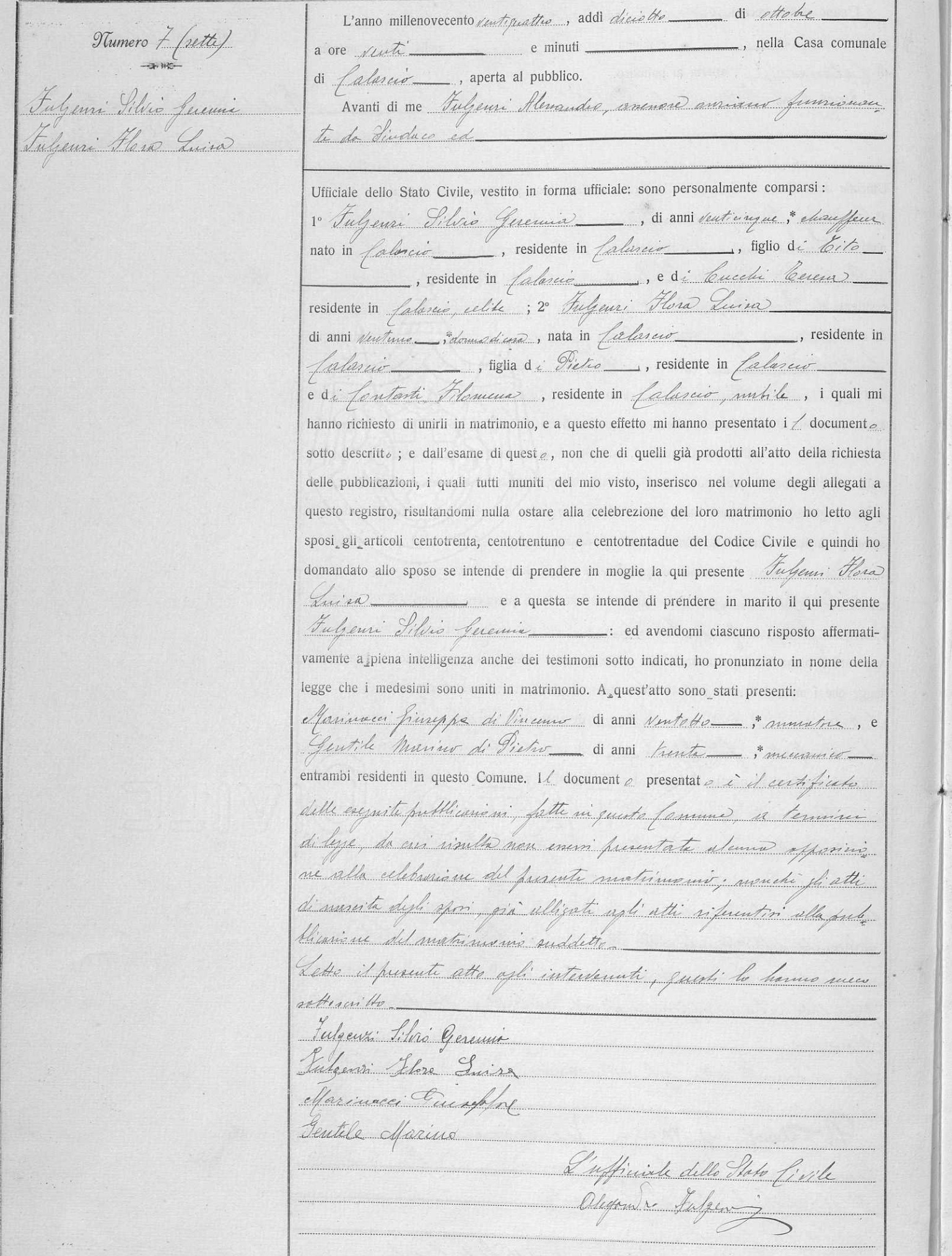 Ferdinando Fulgenzi were married on January 31, 1895 in Calascio, L'Aquila, Abruzzo, Italy. She died.
