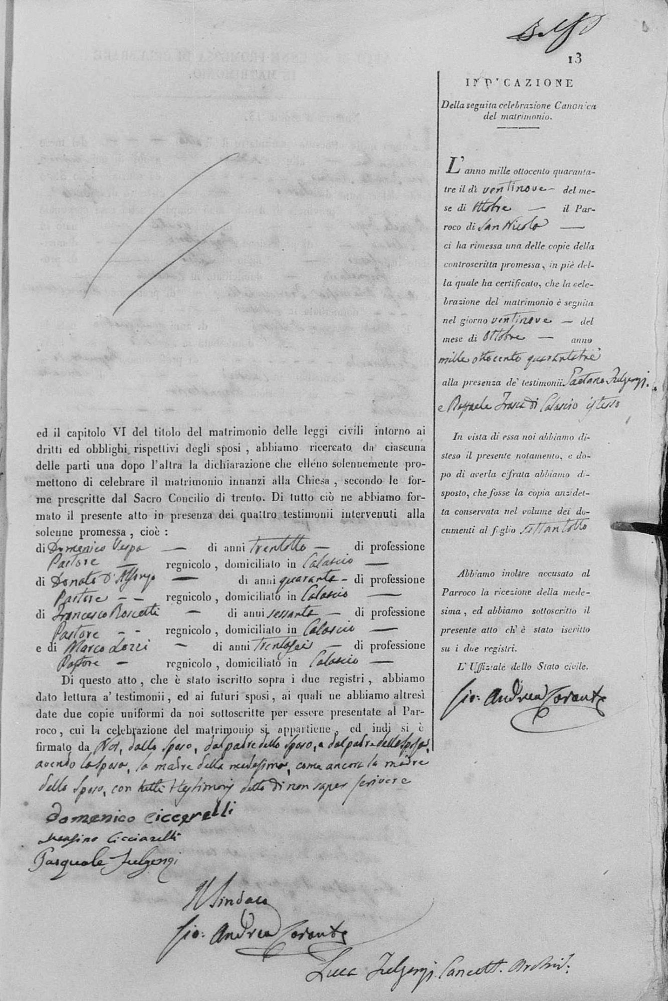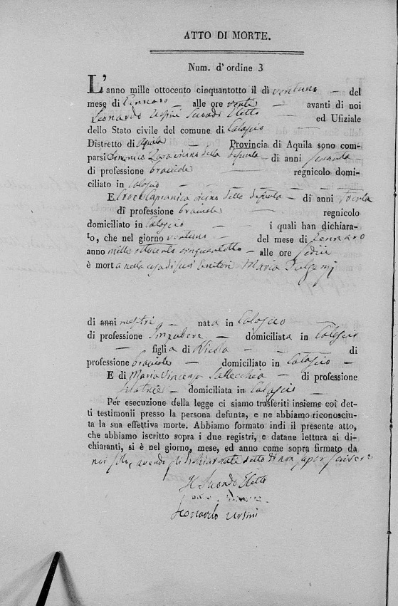 Emilia Pucci were married. He died on July 19, 1877, at age ~85, in Calascio, L'Aquila, Abruzzo, Italy.