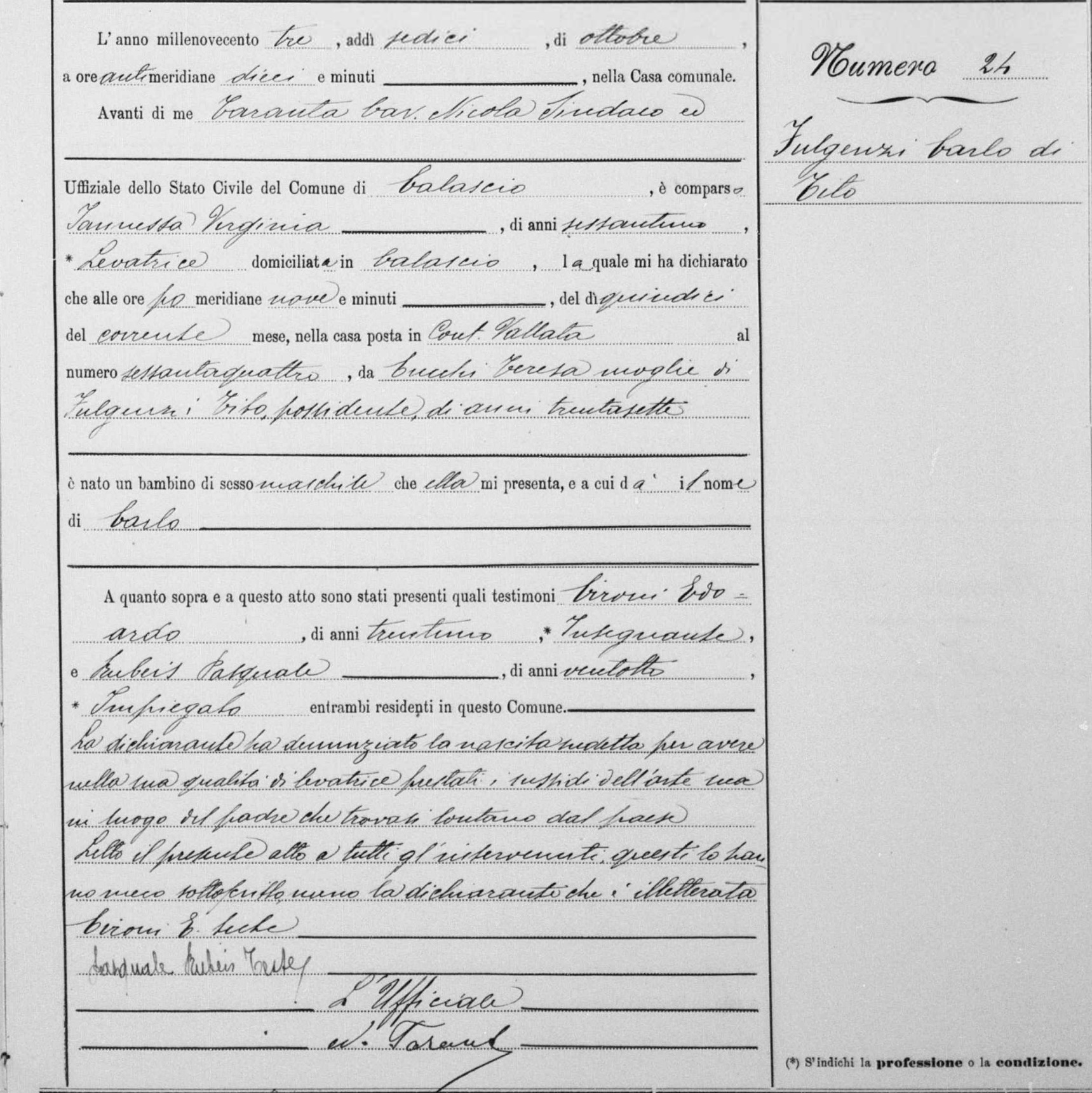 | Daughter | Nunzia Letizia Fulgenzi Born: September 19, 1893, Died: September 18, 1918 |