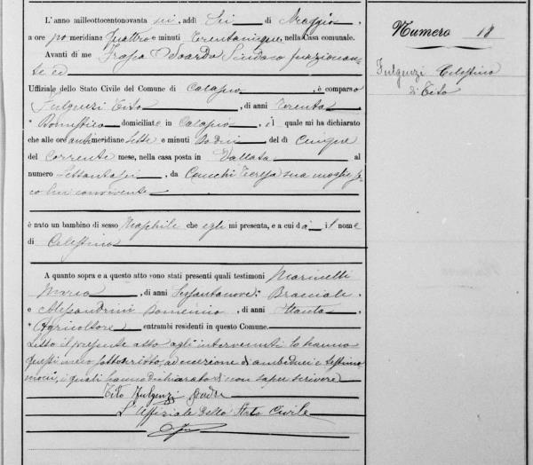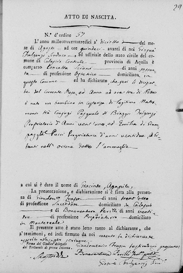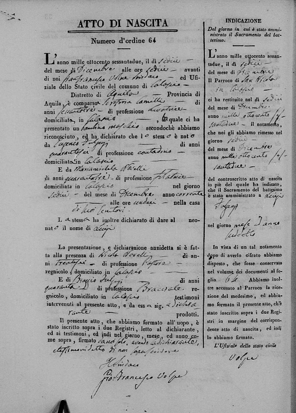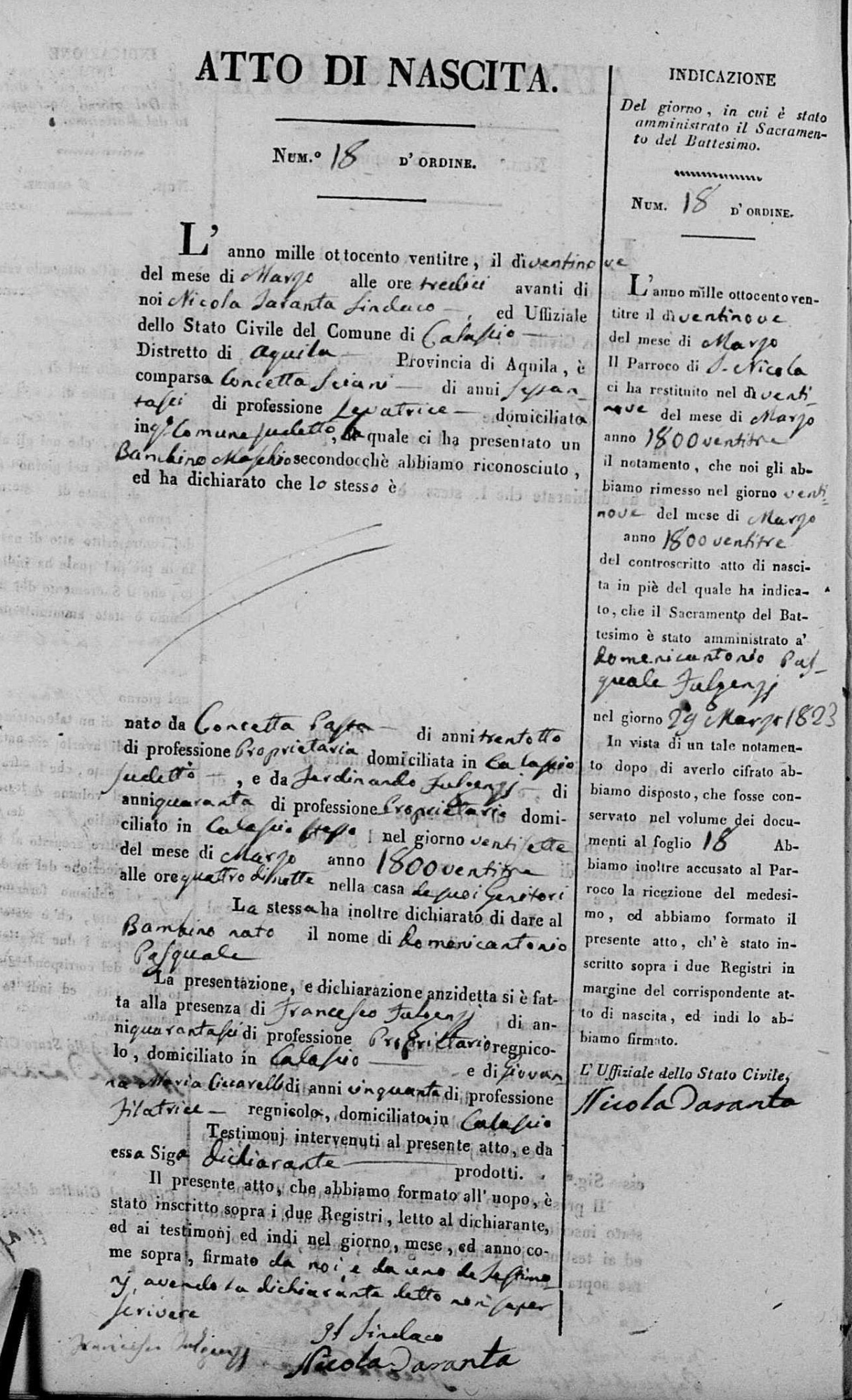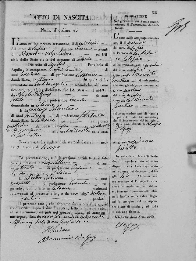 Pasquale Fulgenzi was born in 1792 in Calascio, L'Aquila, Abruzzo, Italy. He and