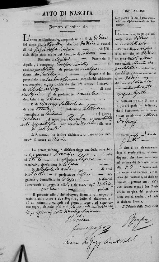 Maria Fulgenzi was born on February 19, 1859 in Calascio, L'Aquila, Abruzzo, Italy. She died.