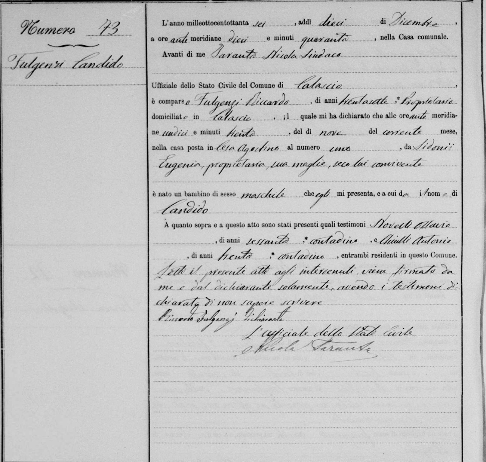 Carolina "Clara" Fulgenzi were married on September 17, 1879 in Calascio, L'Aquila, Abruzzo, Italy. He died.