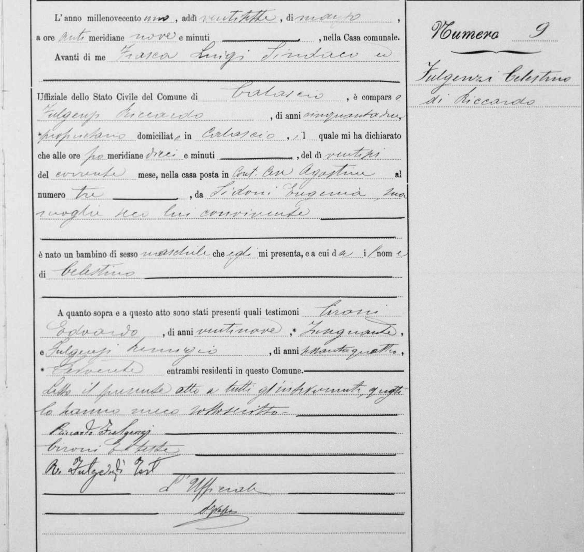 Celestino Fulgenzi was born on March 26, 1901 in Calascio, L'Aquila, Abruzzo, Italy. He and