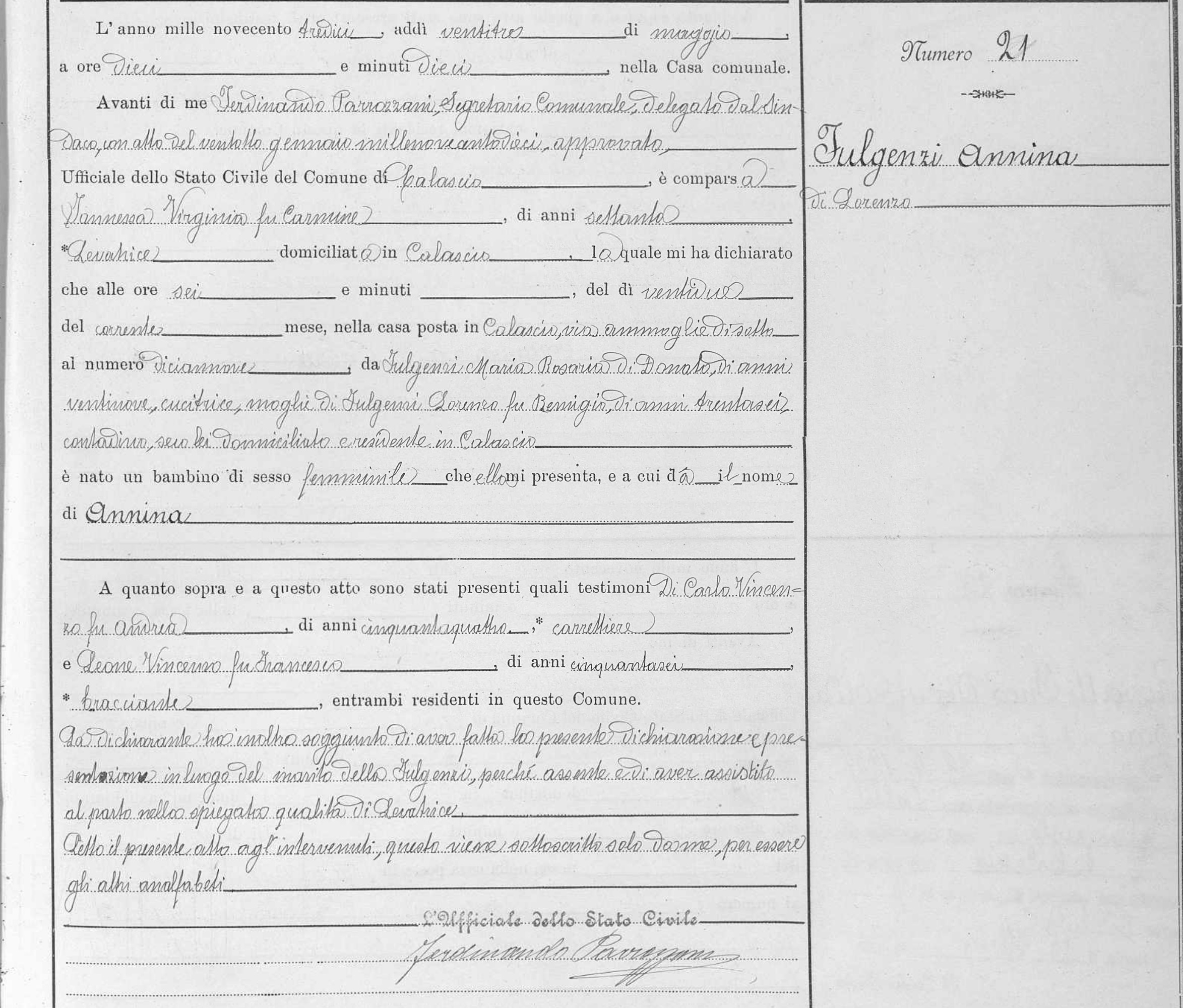 Annina Fulgenzi was born on May 22, 1913 in Calascio, L'Aquila, Abruzzo, Italy. She died.