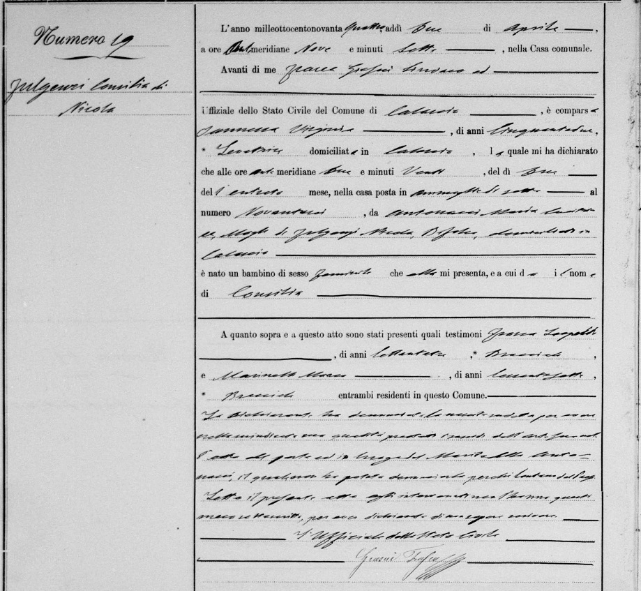 Concetta Olga Fulgenzi was born on February 26, 1897 in Calascio, L'Aquila, Abruzzo, Italy. She died on January 23, 1898, at age 0, in Calascio, L'Aquila, Abruzzo, Italy.