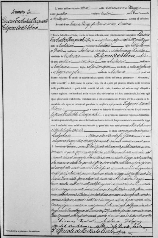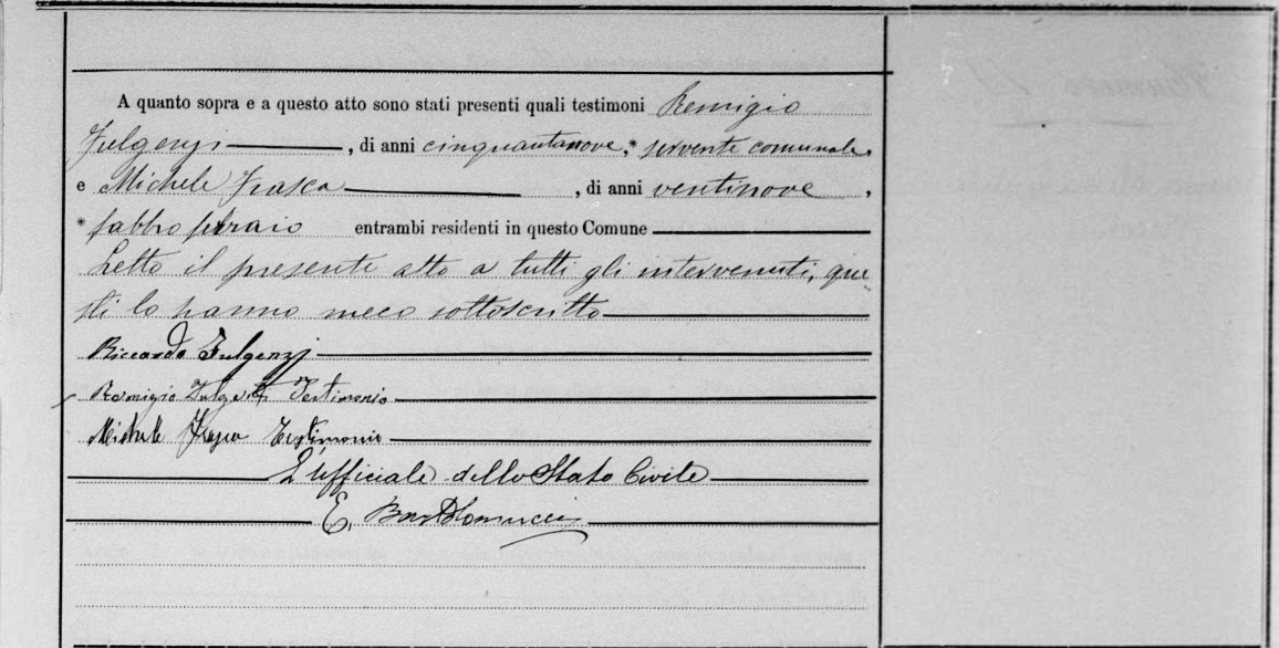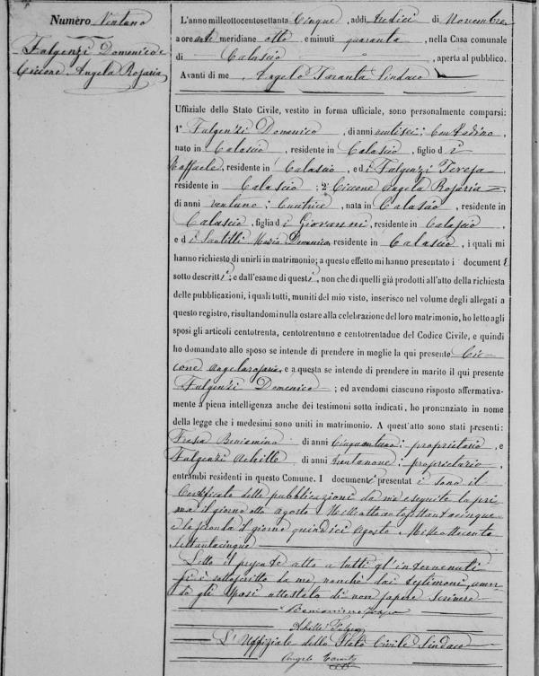 Domenico Fulgenzi were married on November 13, 1875 in Calascio, L'Aquila, Abruzzo, Italy. She died.