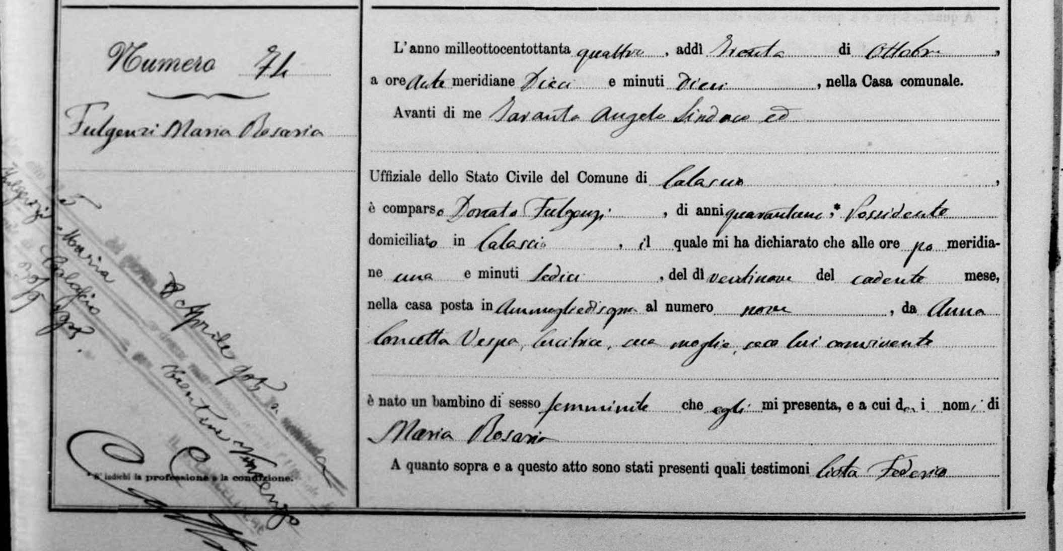 Maria Rosaria Fulgenzi was born on October 29, 1884 in Calascio, L'Aquila, Abruzzo, Italy. She and