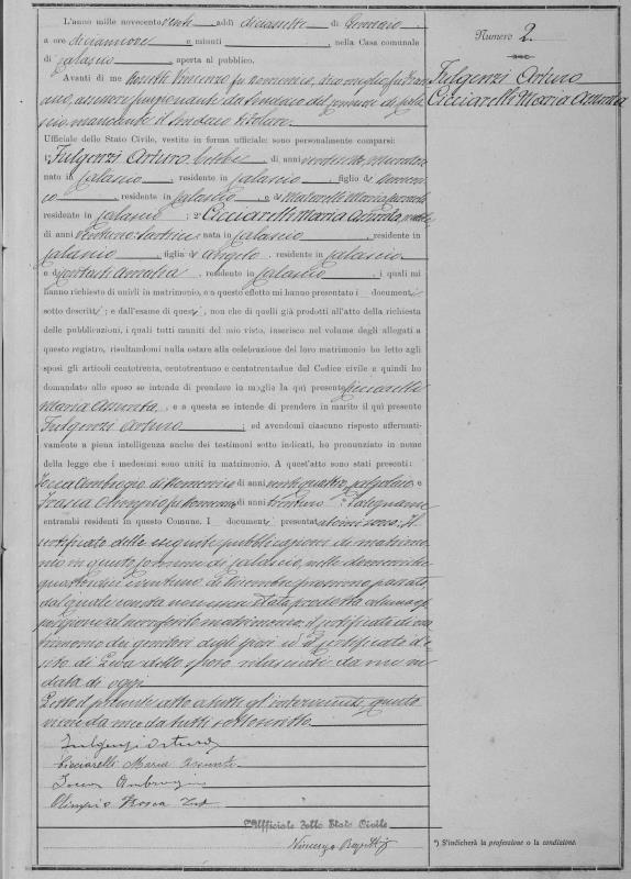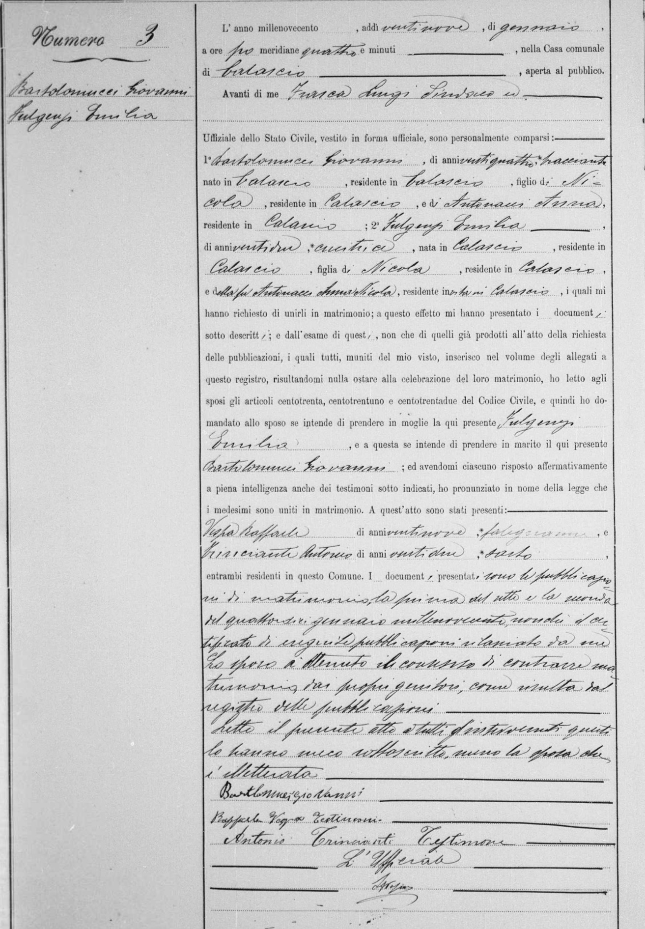 Emilia Fulgenzi were married on January 29, 1900 in Calascio, L'Aquila, Abruzzo, Italy. He died.