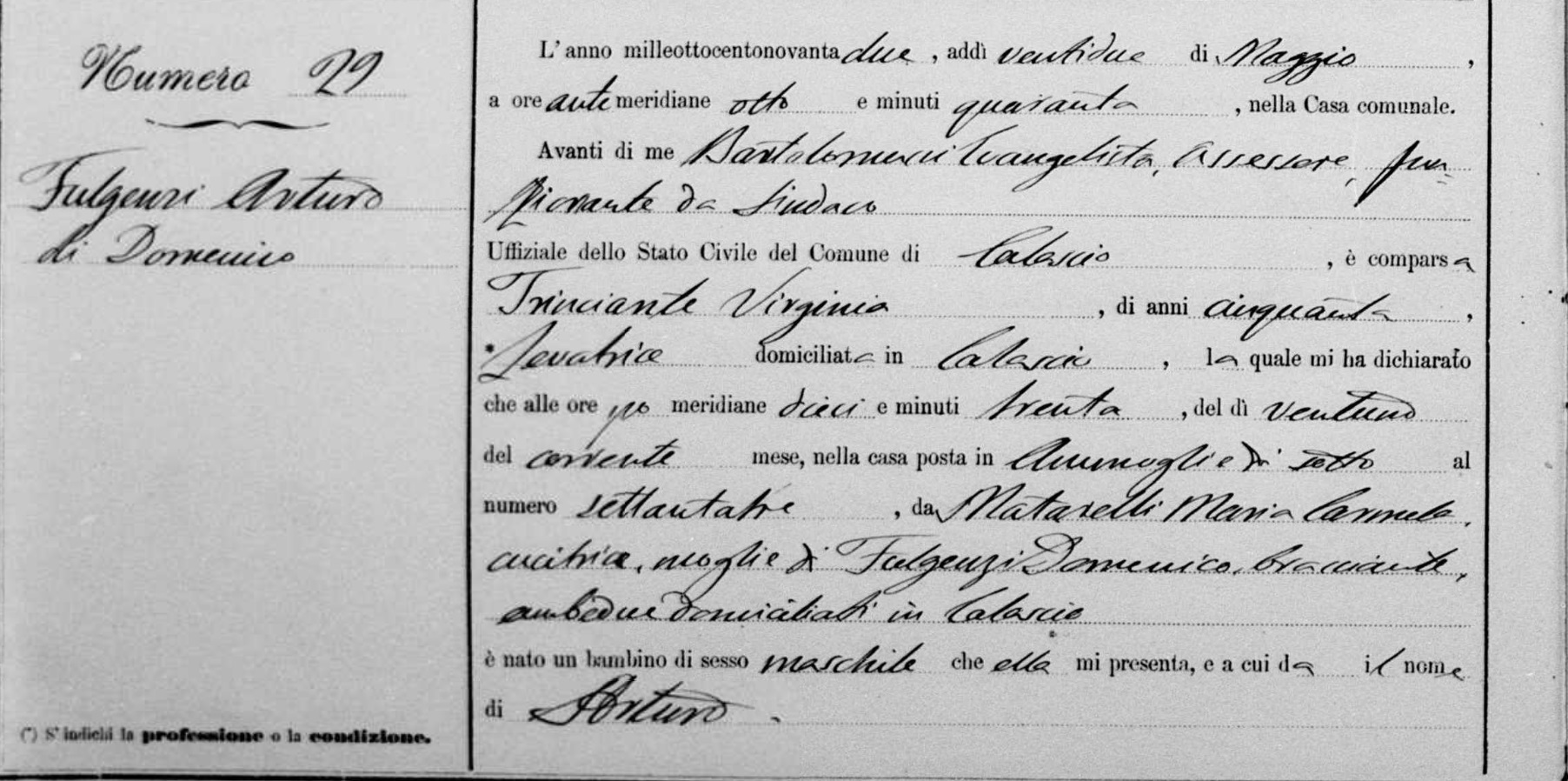 Arturo Fulgenzi was born on May 21, 1892 in Calascio, L'Aquila, Abruzzo, Italy. He and