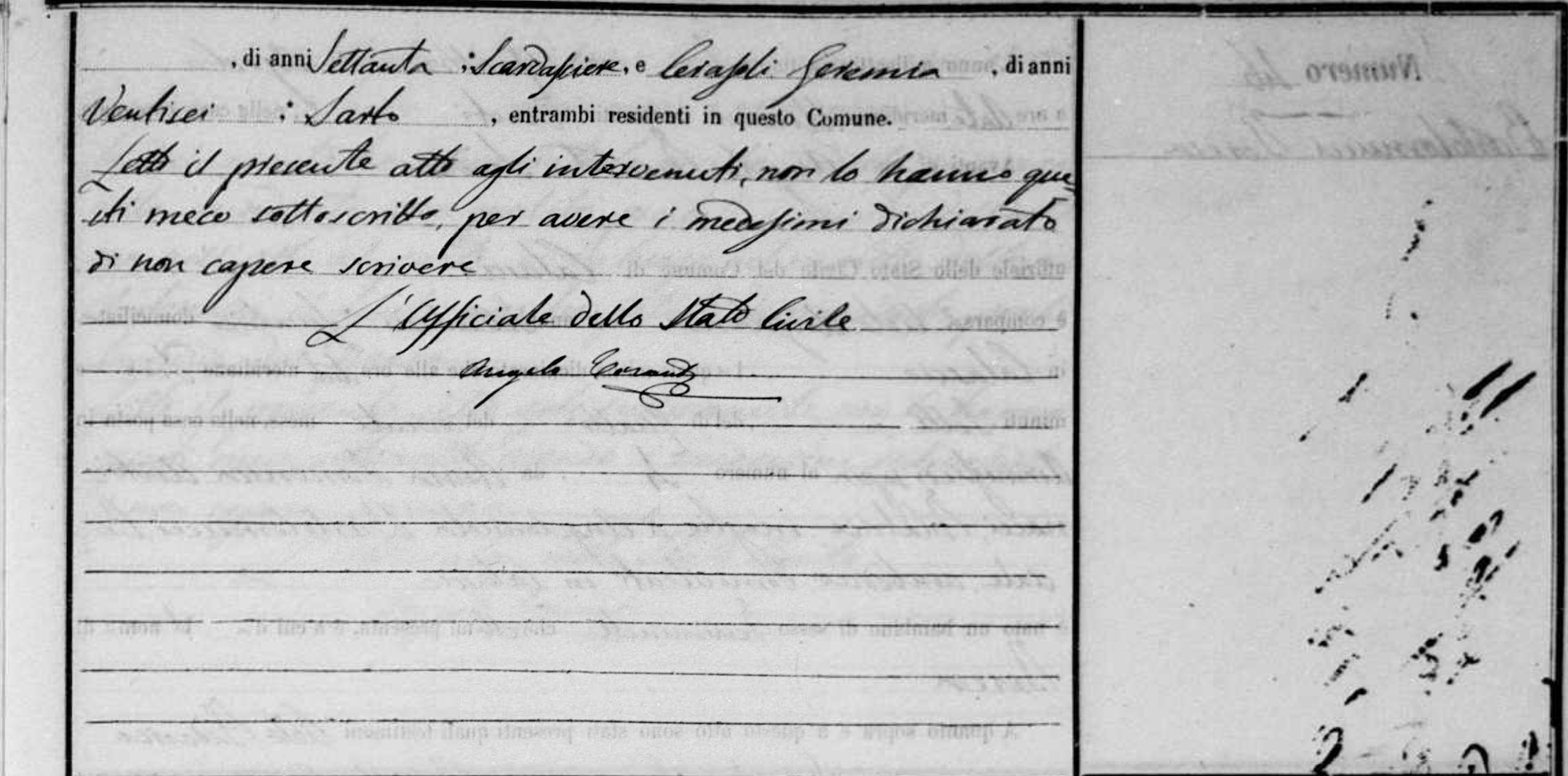 Rosa Fulgenzi were married on December 23, 1899 in Calascio, L'Aquila, Abruzzo, Italy. He died.