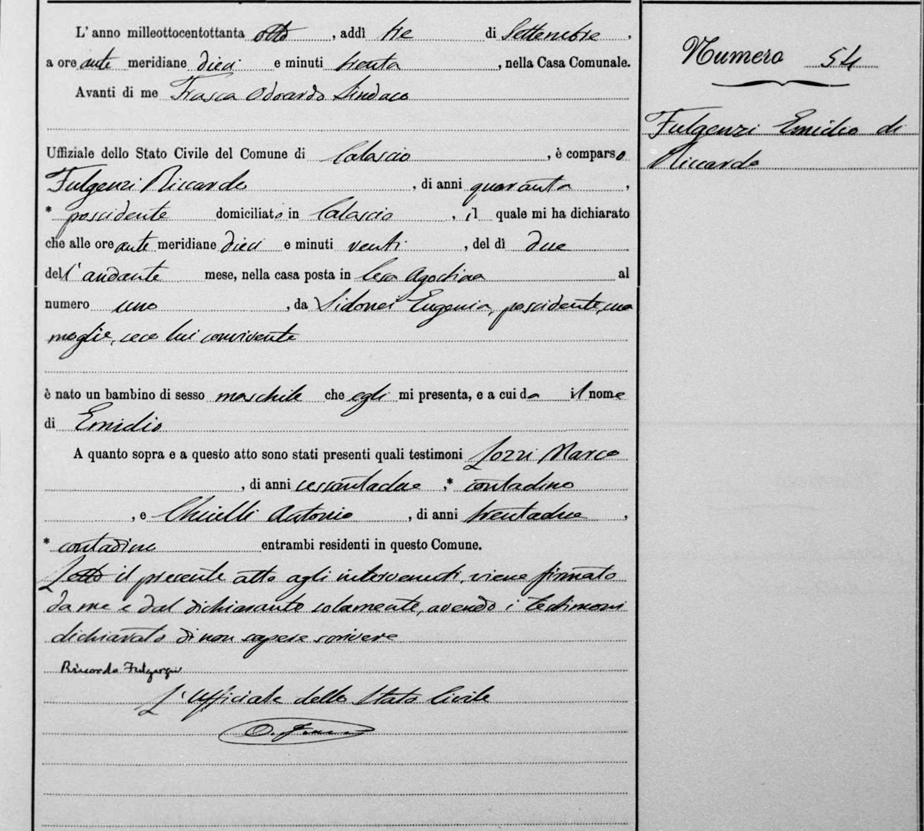 Emidio Fulgenzi was born on September 2, 1888 in Calascio, L'Aquila, Abruzzo, Italy. He died.
