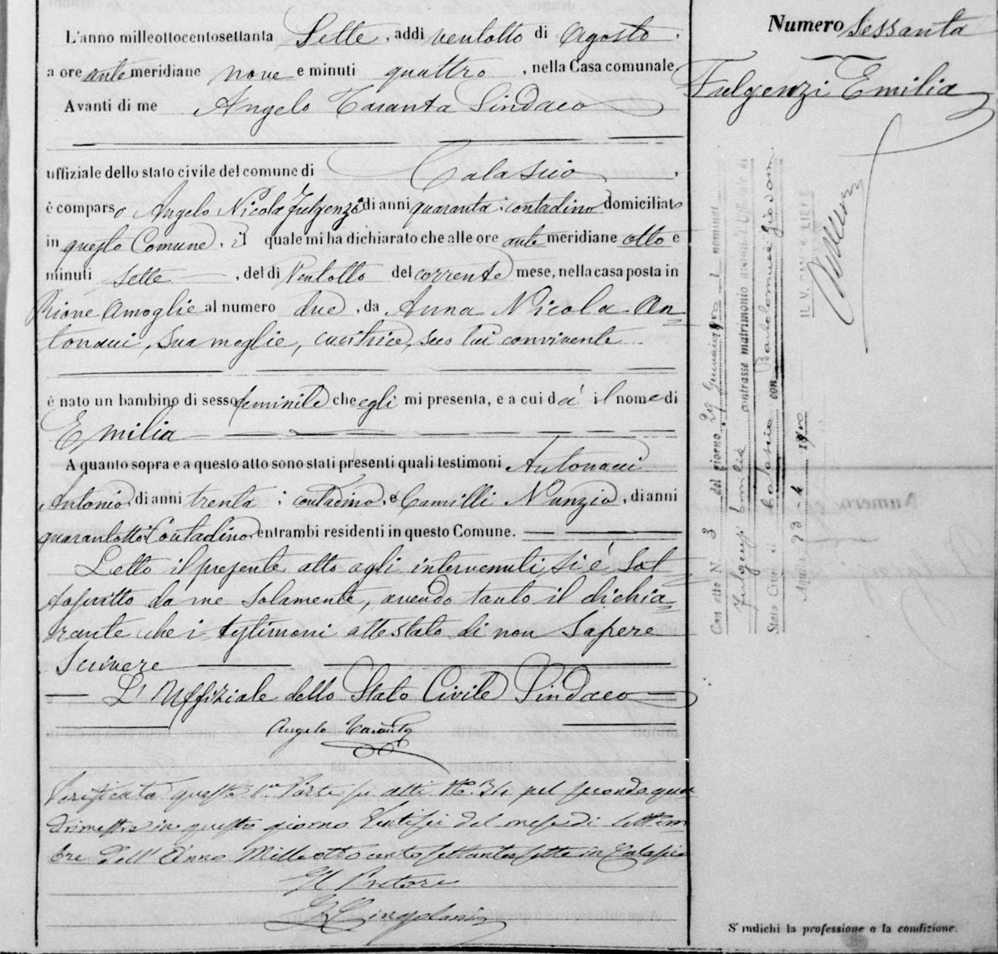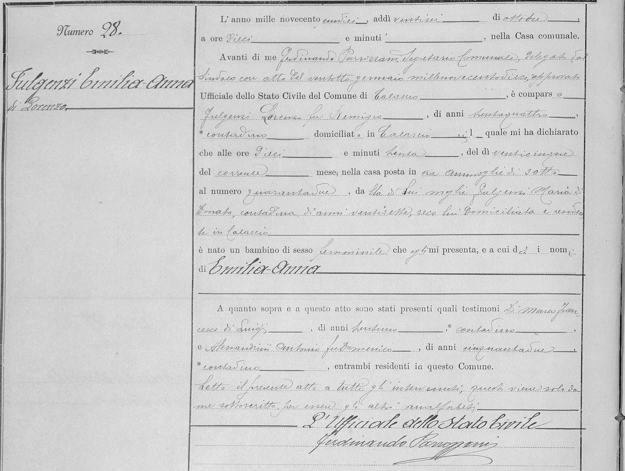 Emilia Fulgenzi was born on August 28, 1877 in Calascio, L'Aquila, Abruzzo, Italy. She and