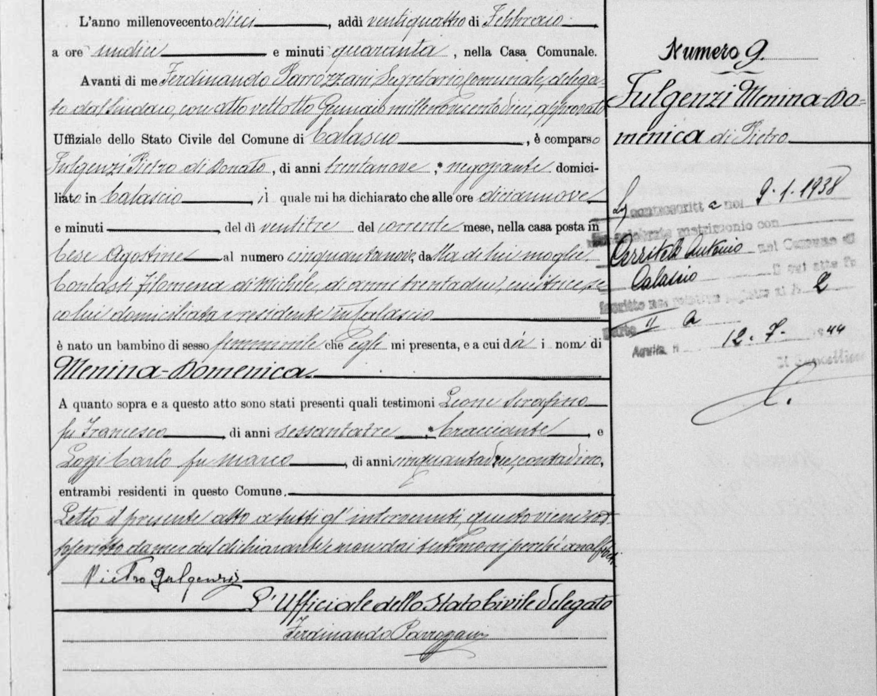 Maria Domenica Fulgenzi was born on February 23, 1910 in Calascio, L'Aquila, Abruzzo, Italy. She and