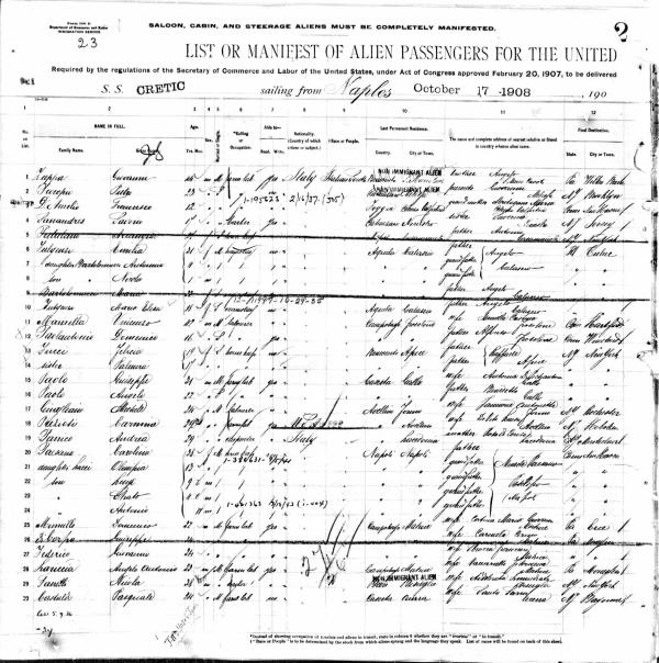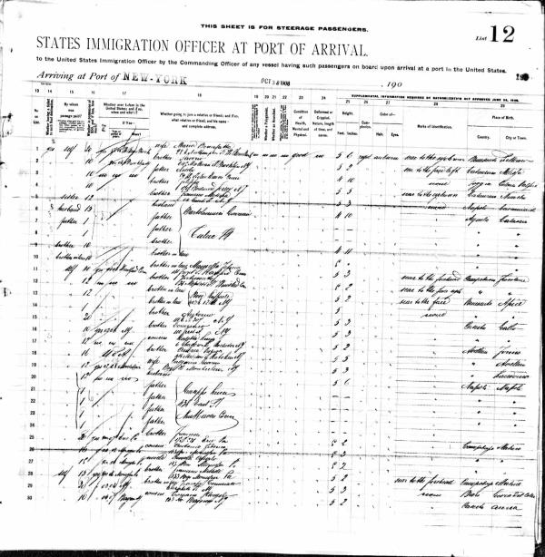 Emilia Fulgenzi and Children 1908 Ship Arrival Manifest, Lines 6-8