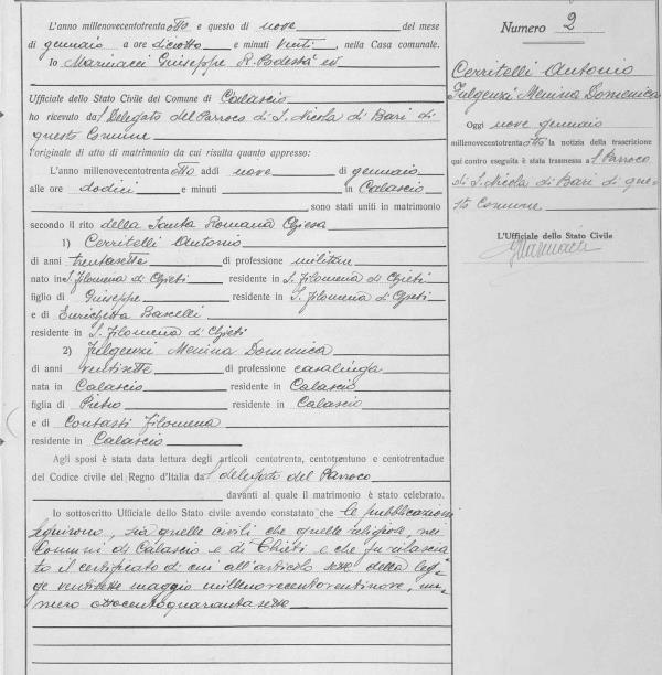 Antonio Corritelli were married on January 9, 1938 in Calascio, L'Aquila, Abruzzo, Italy. She died.