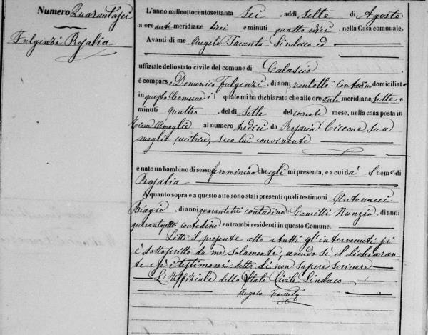 Rosa Fulgenzi was born on August 7, 1876 in Calascio, L'Aquila, Abruzzo, Italy. She and