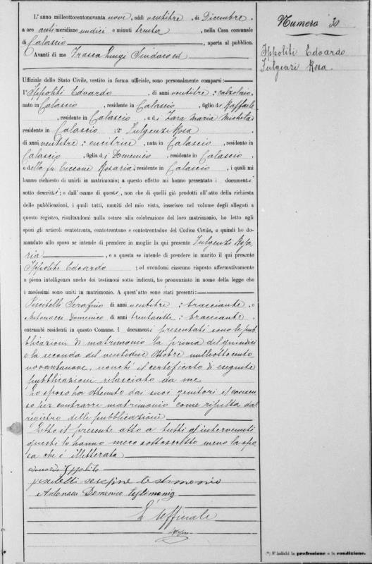 Edoardo Ippoliti were married on December 23, 1899 in Calascio, L'Aquila, Abruzzo, Italy. She died.