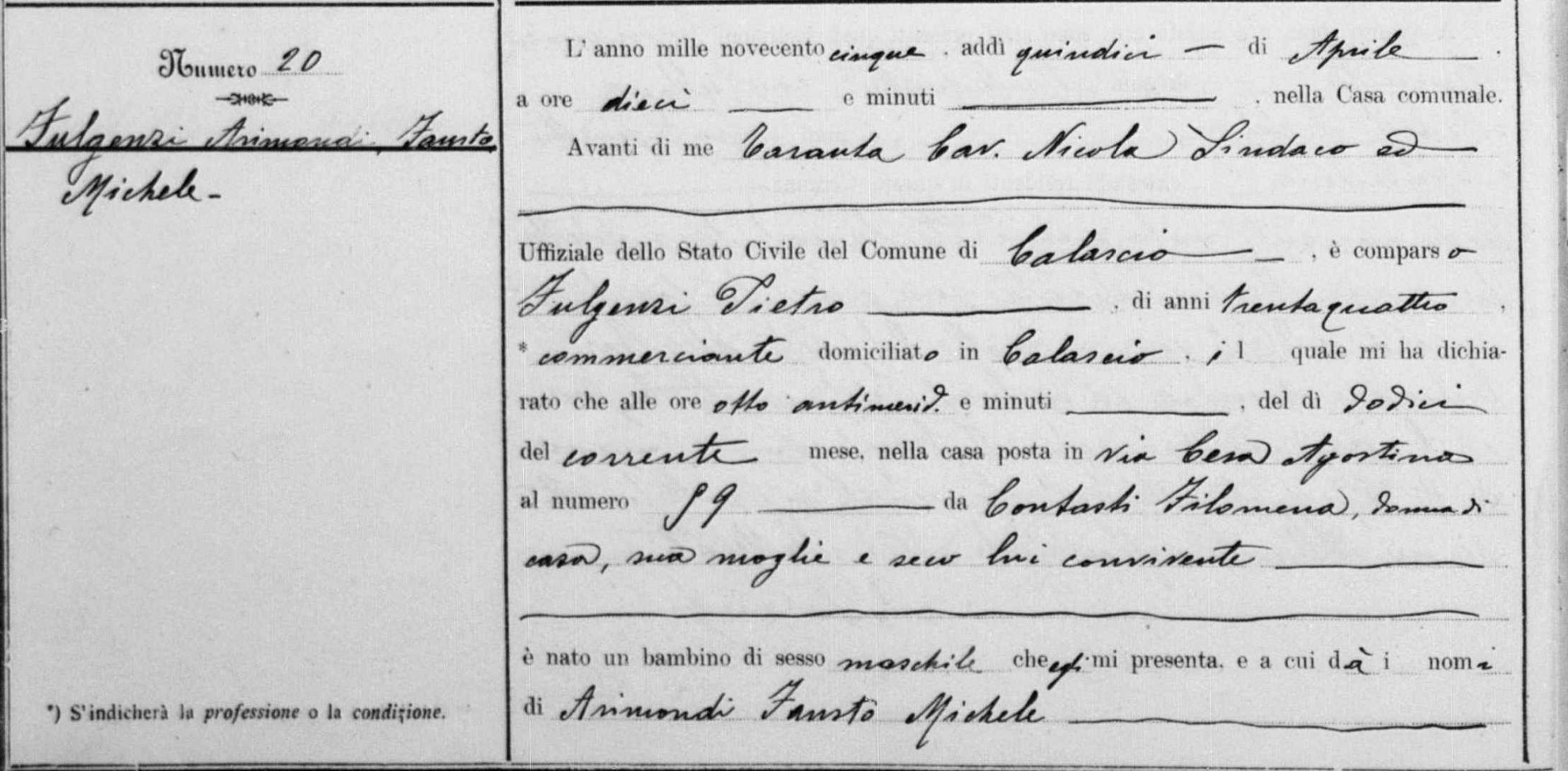| Son | Giuseppe Fulgenzi Born: January 2, 1891, Died: January 2, 1891 |