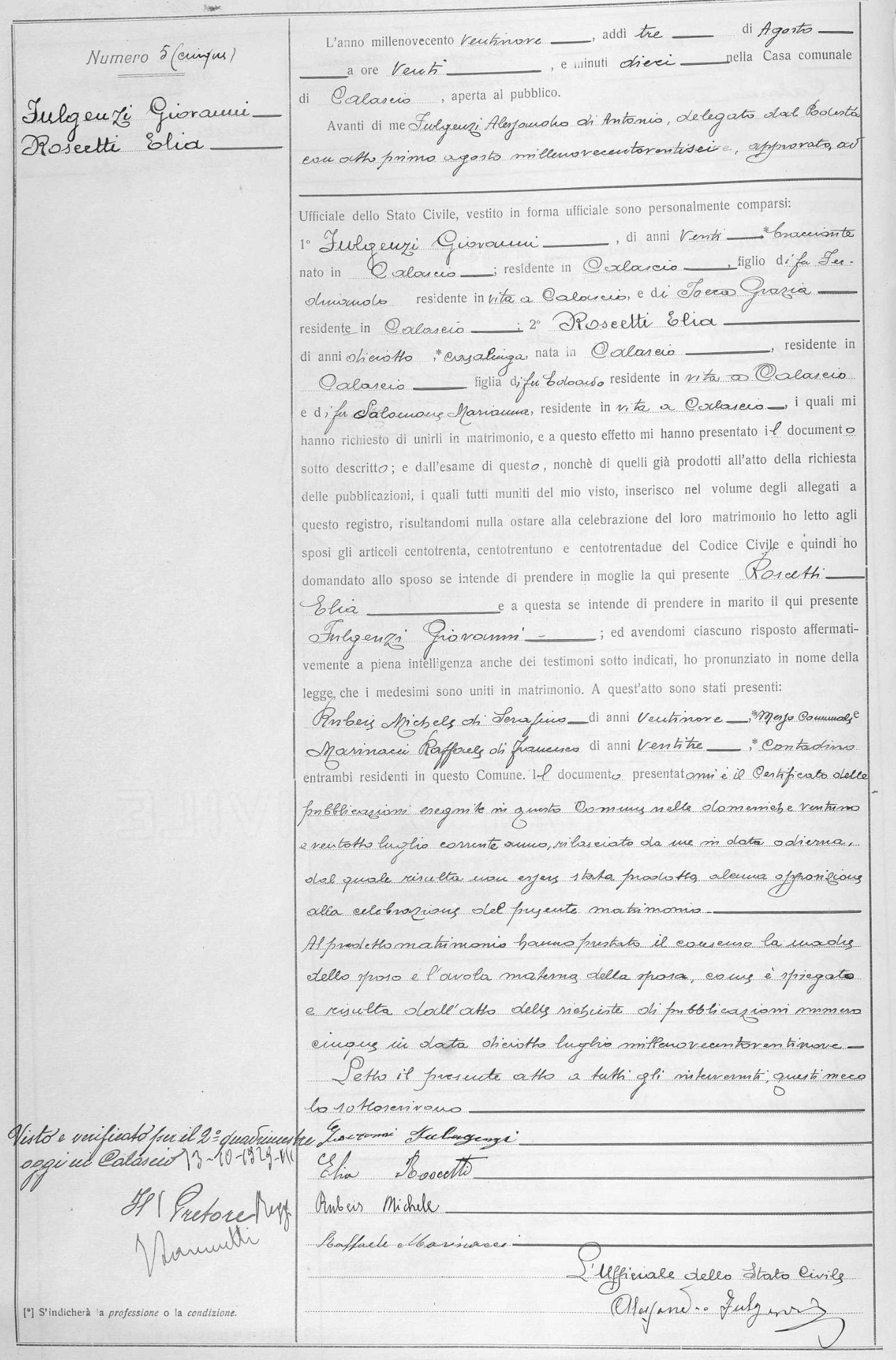 Giovanni Fulgenzi were married on August 3, 1929 in Calascio, L'Aquila, Abruzzo, Italy. She died.