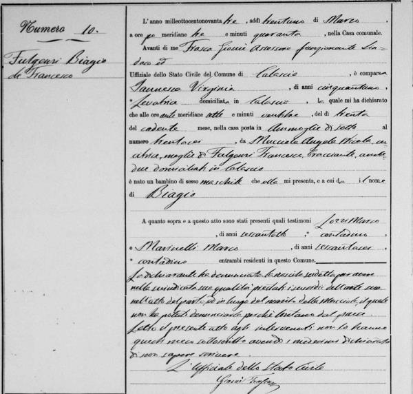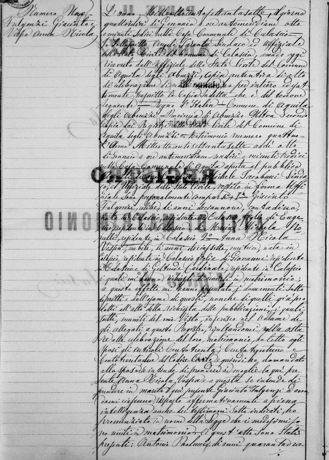 Giacinto Fulgenzi were married on January 14, 1877 in Calascio, L'Aquila, Abruzzo, Italy. She died.