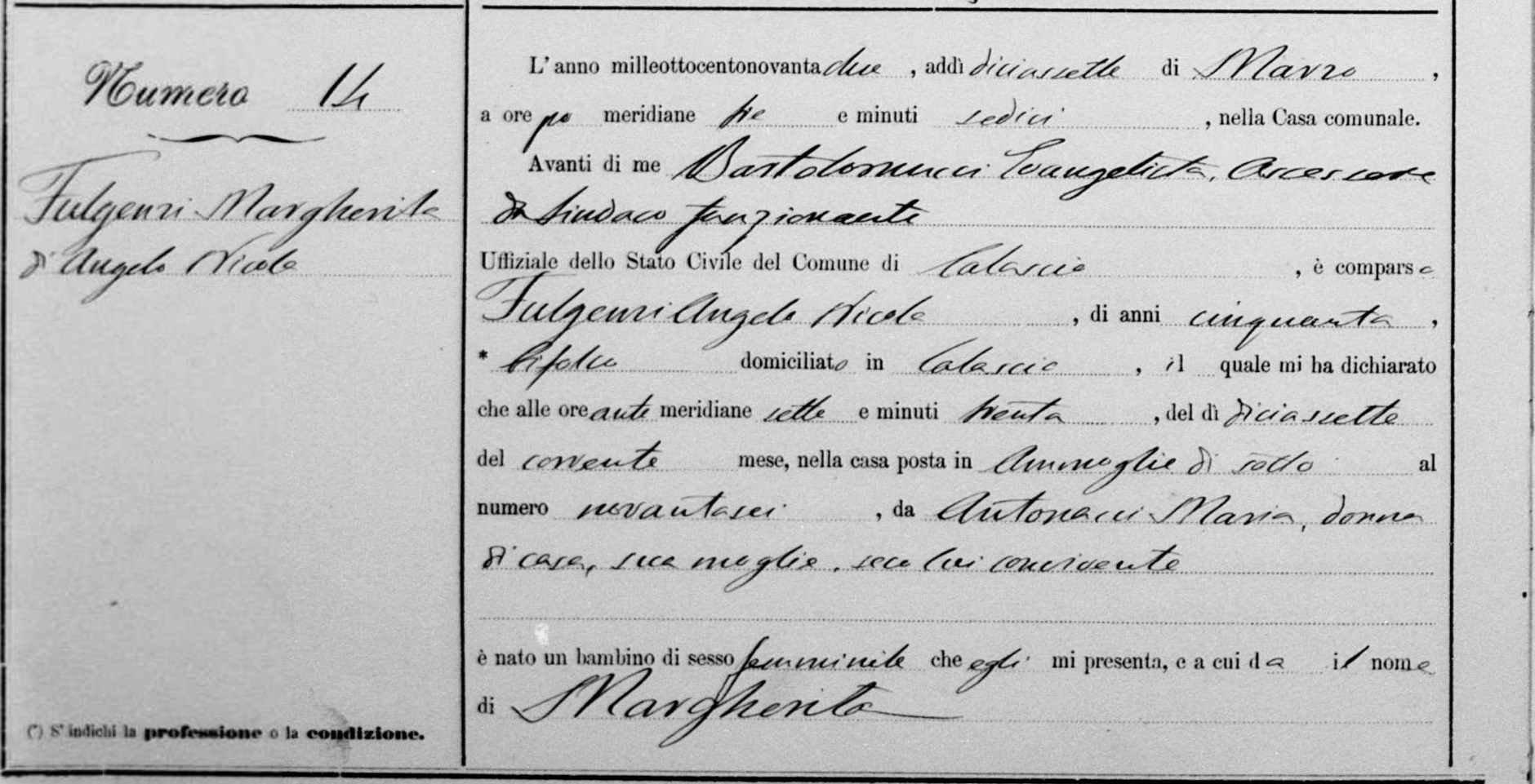 Margherita Fulgenzi was born on March 17, 1892 in Calascio, L'Aquila, Abruzzo, Italy. She died.