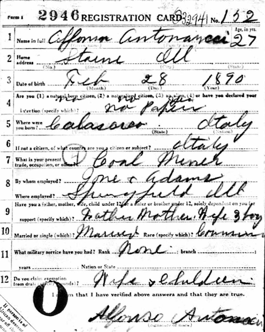 Alfonso Antonacci was born on March 29, 1890 in Calascio, L'Aquila, Abruzzo, Italy. He and