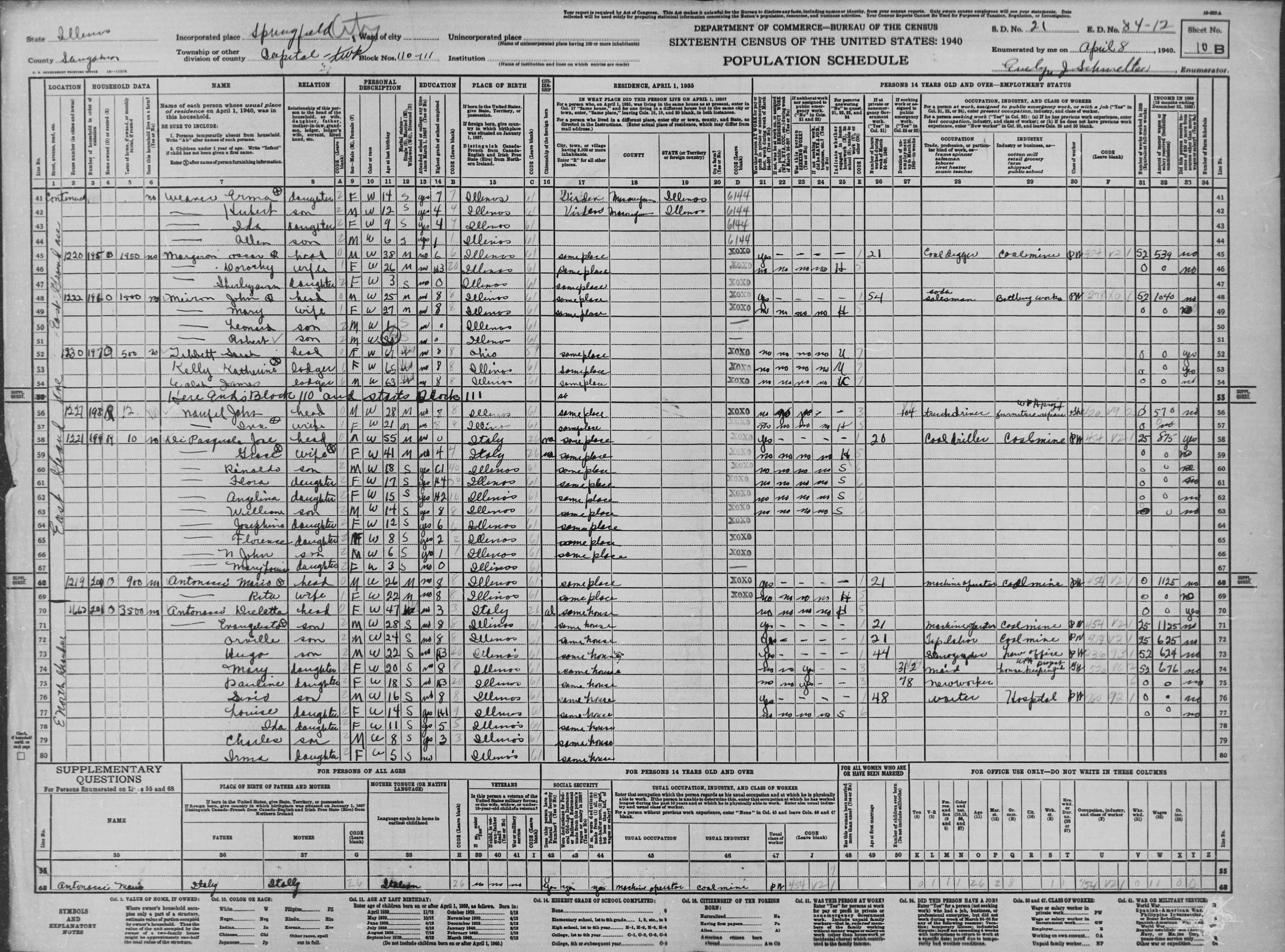 Antonacci Family 1940 Federal Census Illinois, Lines 70-80