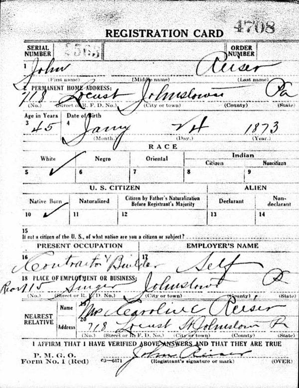 John Reiser was born on January 24, 1873 in Johnstown, Cambria, Pennsylvania, USA. He and