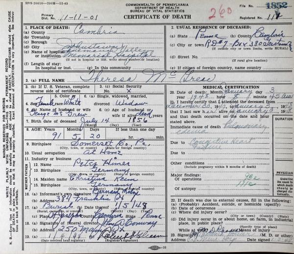 Theresa Himes was born on July 14, 1856 in Somerset, Pennsylvania, USA. She and