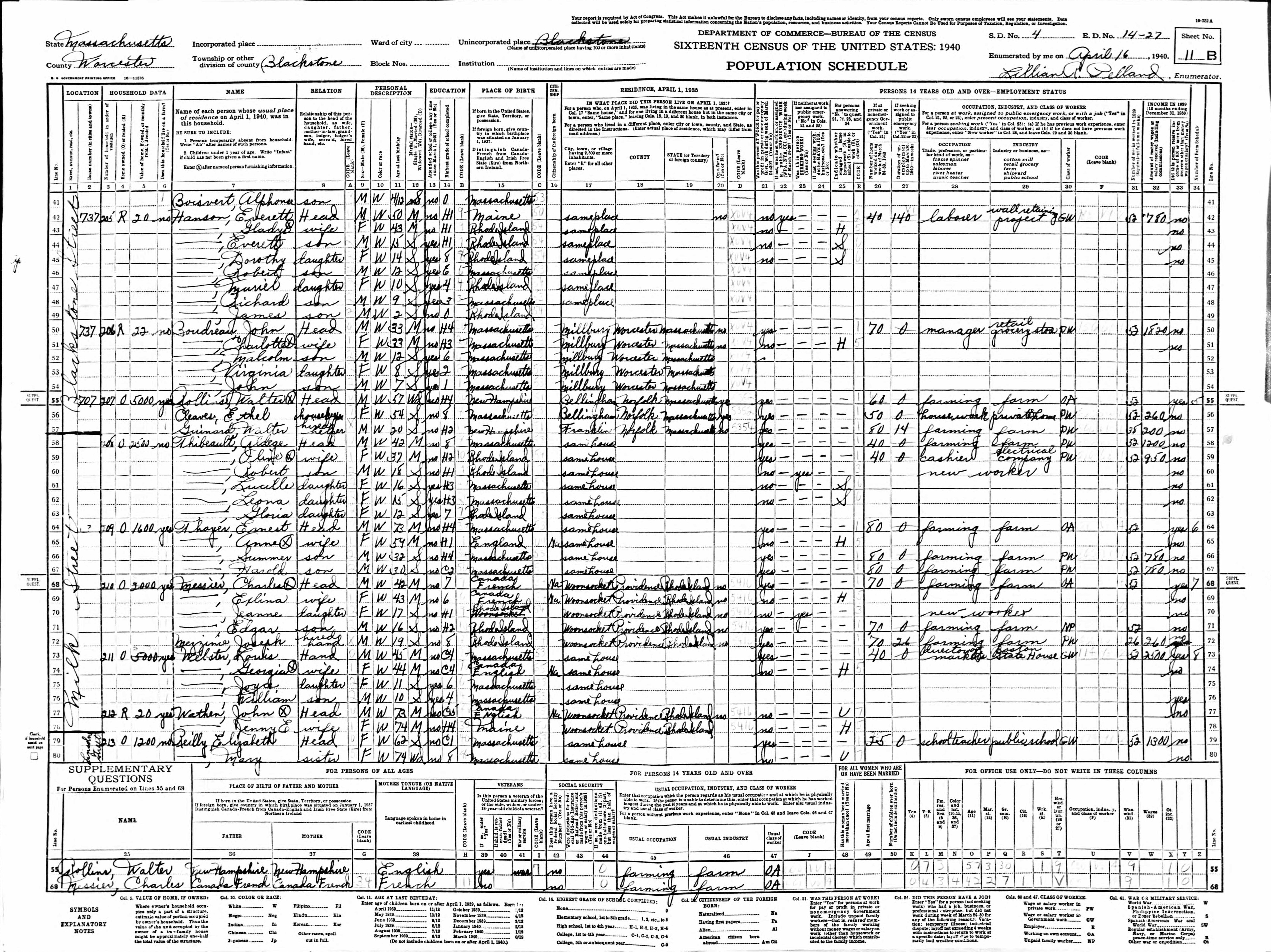 Hanson Family 1940 Federal Census Massachusetts, Lines 42-49