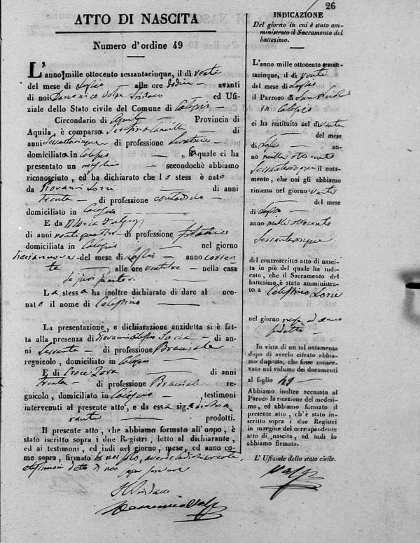 Celestino Lozzi was born on July 19, 1865 in Calascio, L'Aquila, Abruzzo, Italy. He died.