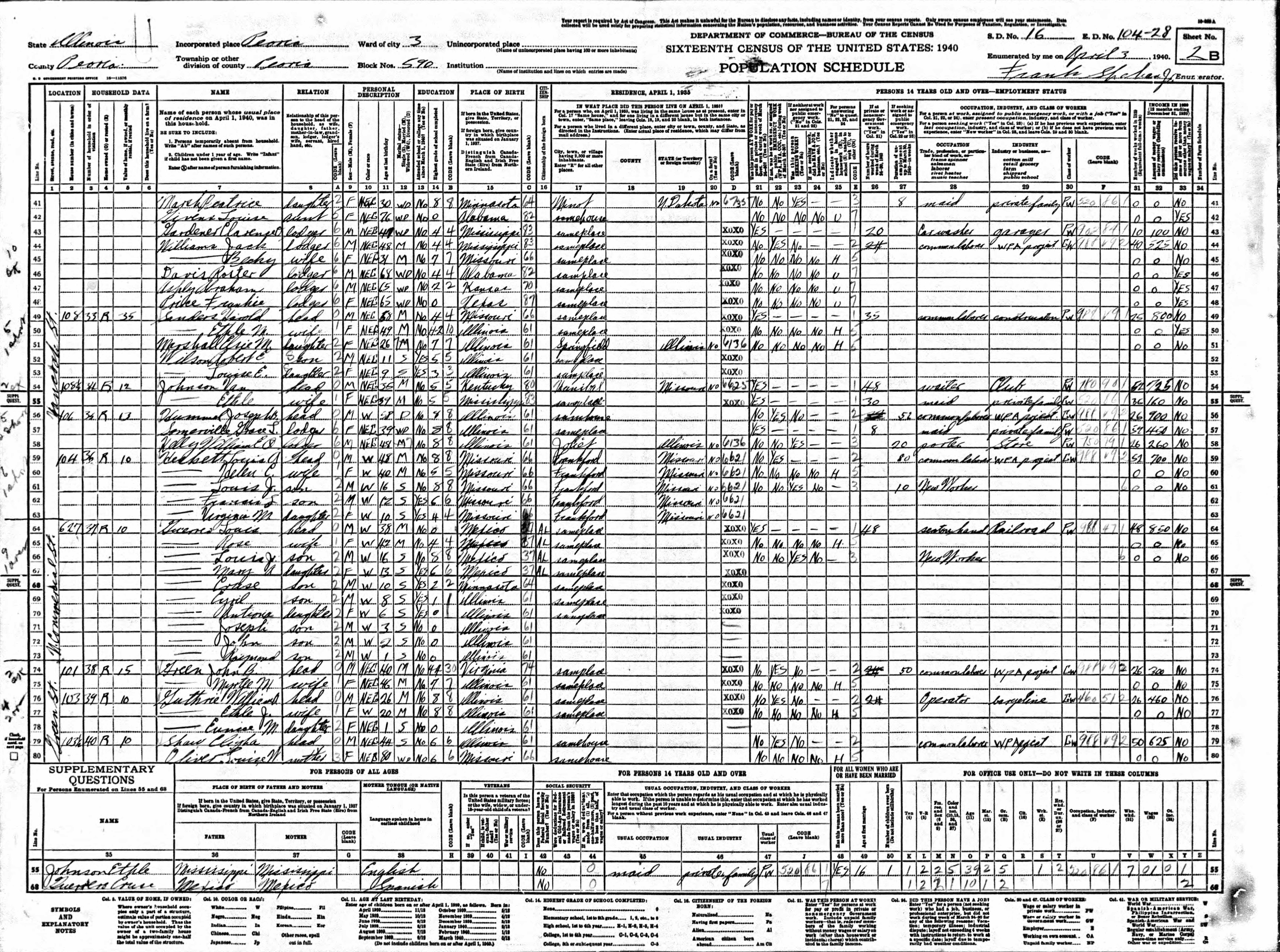 Heskett Family 1940 Federal Census Illinois, Lines 59-63