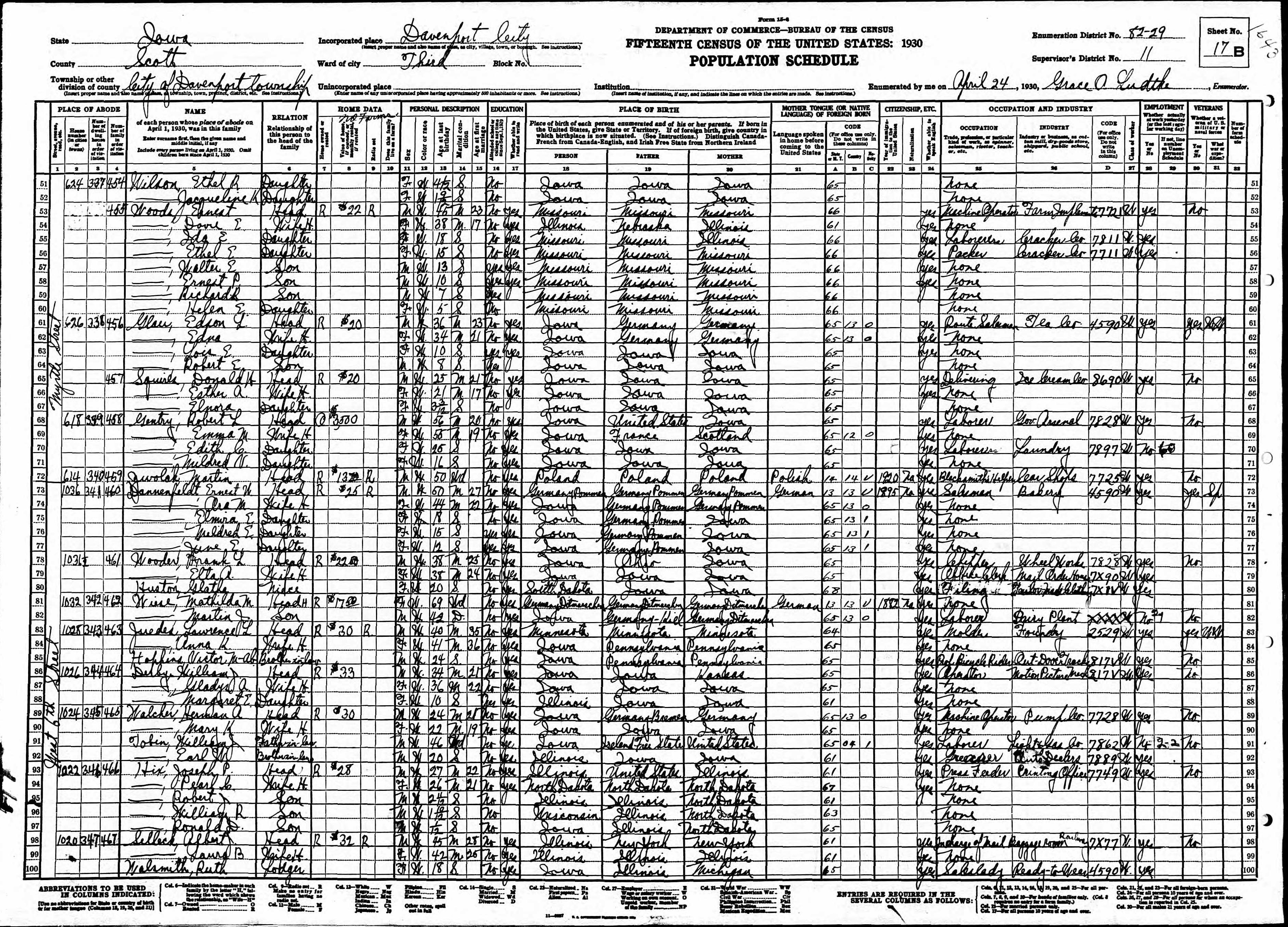 Dannenfeldt Family 1930 Federal Census Iowa, Lines 73-77