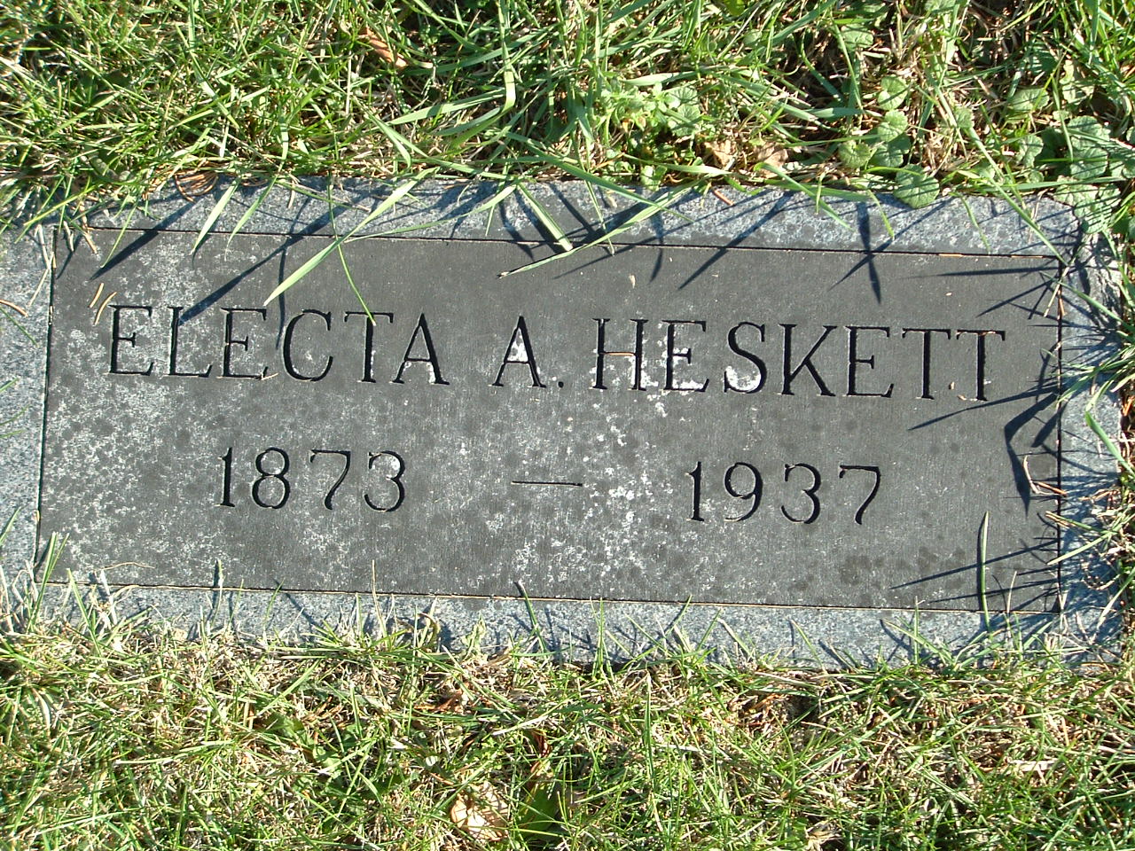 John G. Heskett were married. She died on June 22, 1940, at age 85, in Toledo, Lucas, Ohio, USA. She was buried in Alton Cemetery, Alton, Illinois.